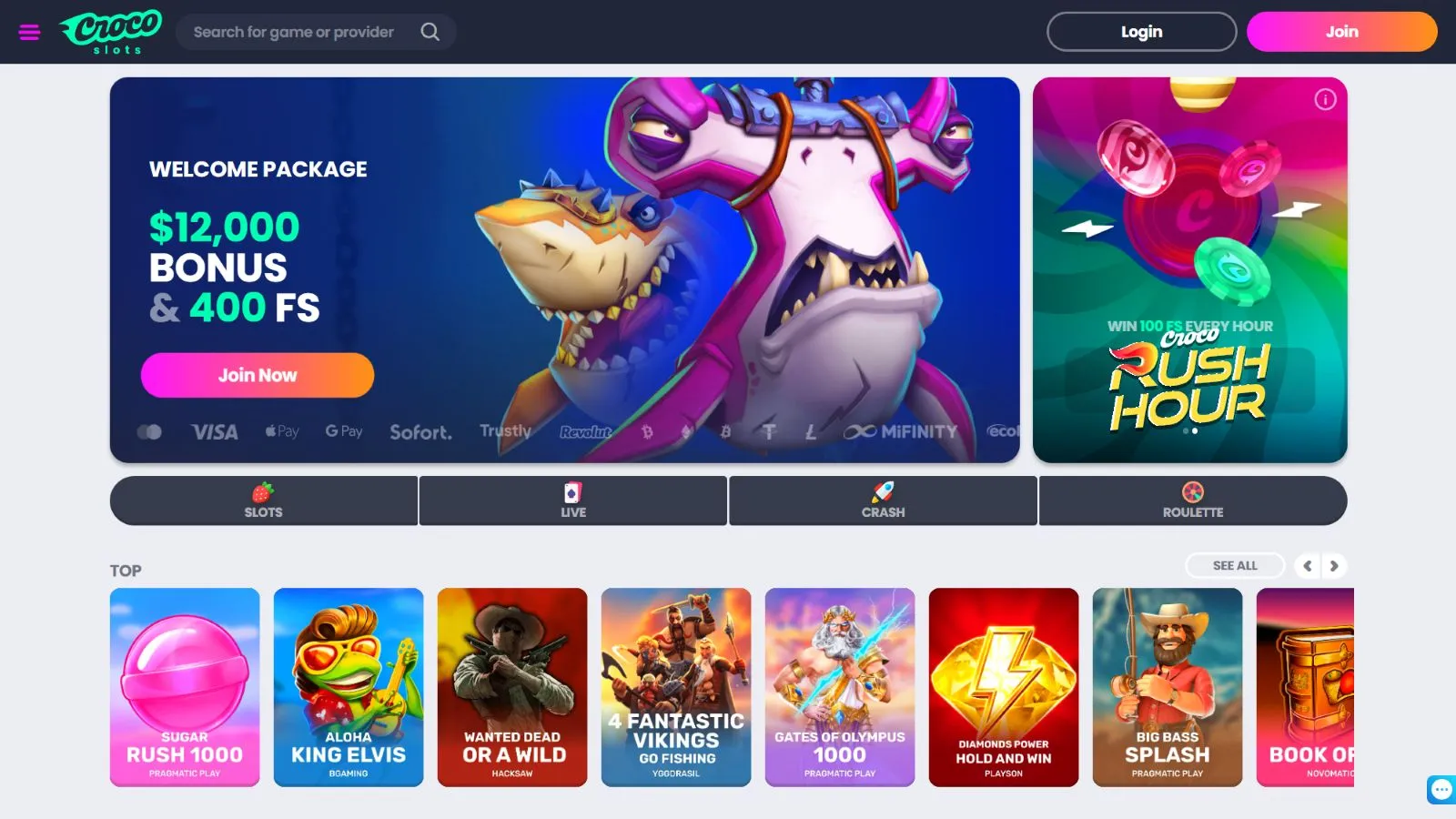 Welcome to our comprehensive Crocoslots Casino review! Launched in 2022, Crocoslots is an online gambling platform that offers an extensive collection of games, instant crypto payments, and unique bonuses.