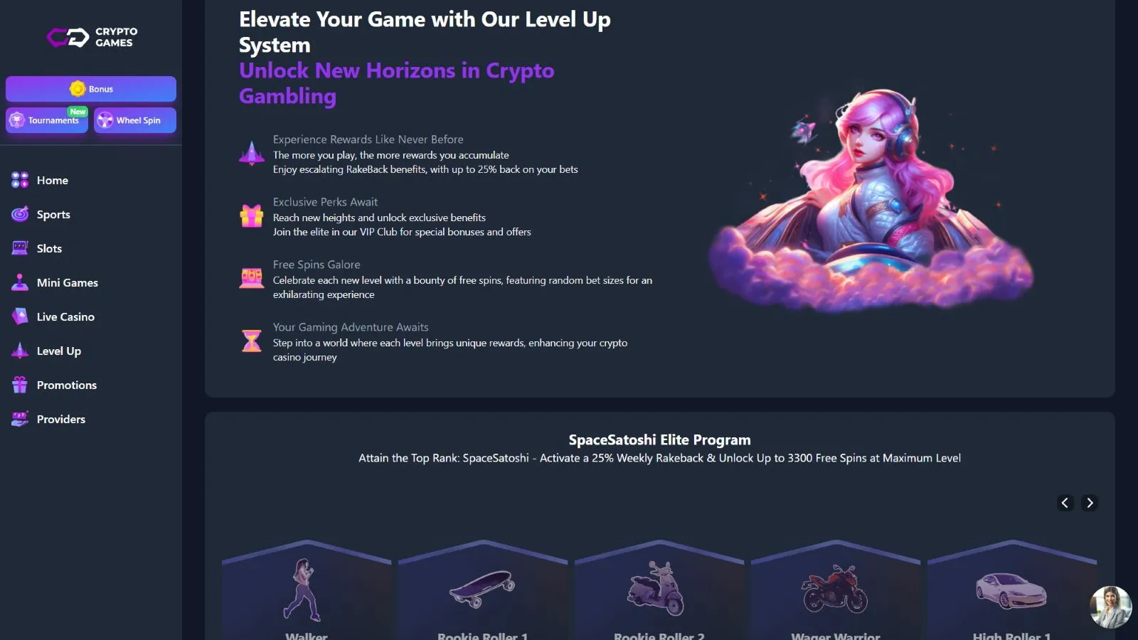 At Crypto-gGames.io, they believe in celebrating each player’s commitment and passion. Their unique VIP Lounge is a rewards system consisting of 25 levels, where each one has more benefits than the previous one.