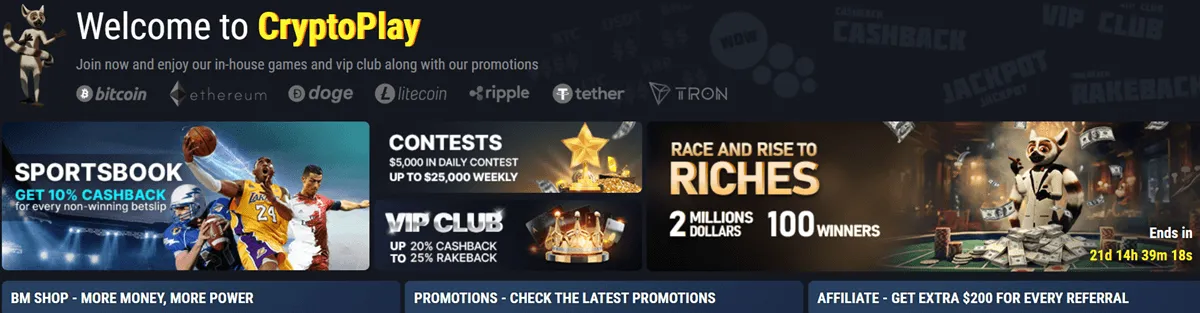 The online cryptocurrency gambling industry is expanding. So, seeing the likes of Cryptoplay Casino build a following in this market is a great sign of how players are embracing these gaming platforms. The casino operator has been able to attract a good number of new players thanks to its lucrative welcome bonus for the first two deposits. Apart from that, Cryptoplay also supports numerous coins for deposits and withdrawals.