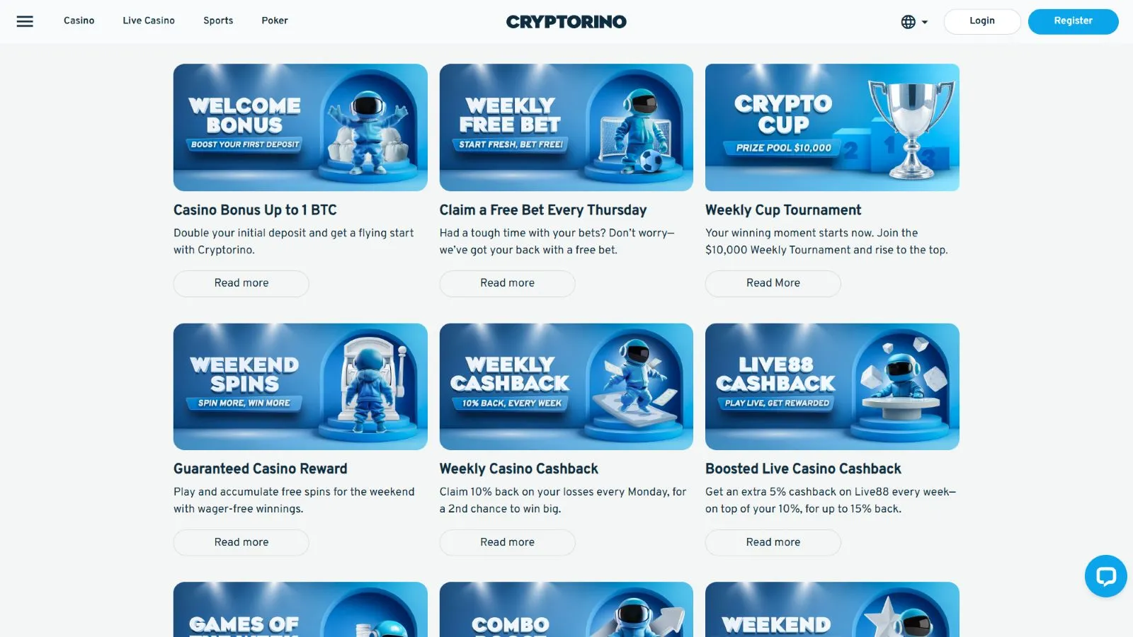 Cryptorino Casino offers a wide array of bonuses and promotions to give players a flying start. It features exciting cash and free spins reloads for casino players and free bets for sports betting enthusiasts.