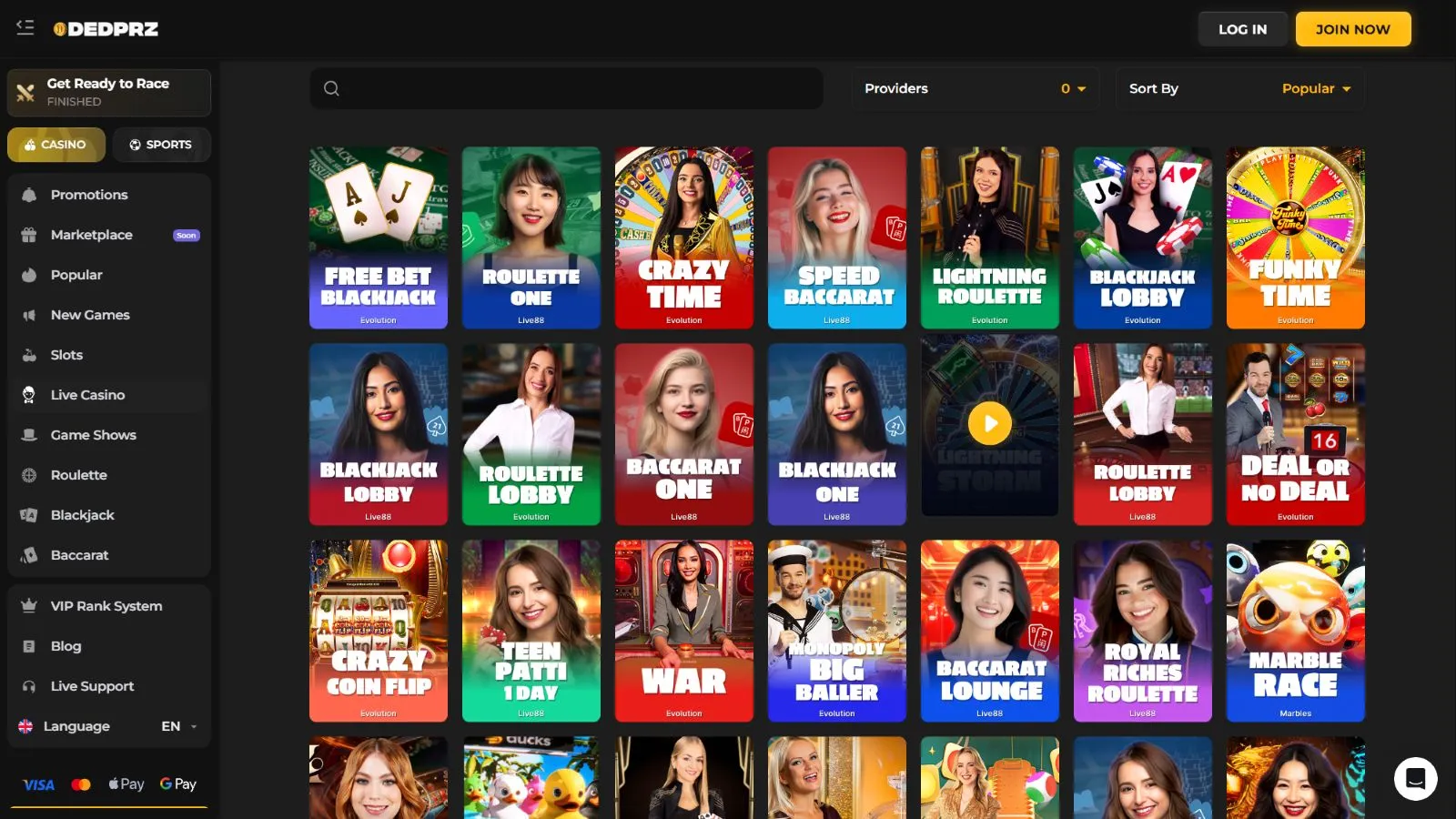 DEDPRZ Casino is a new casino that has only recently entered the market. So far, we've conducted a basic check and are continuing to gather data — from user experience to withdrawal conditions. A full review will be available after a more detailed analysis.