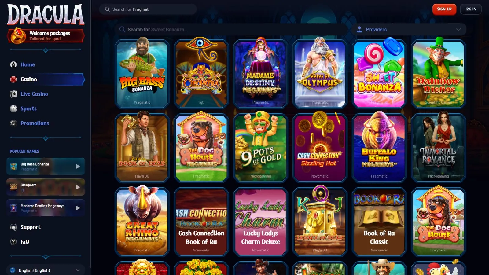 Dracula Casino has over 5,000 slots and live games thanks to its partnership with 41 providers. Top shots here include: