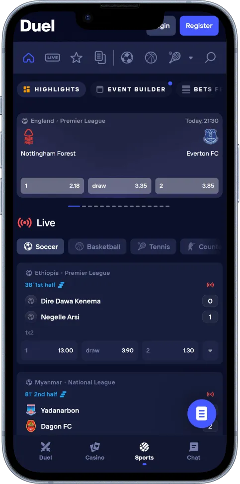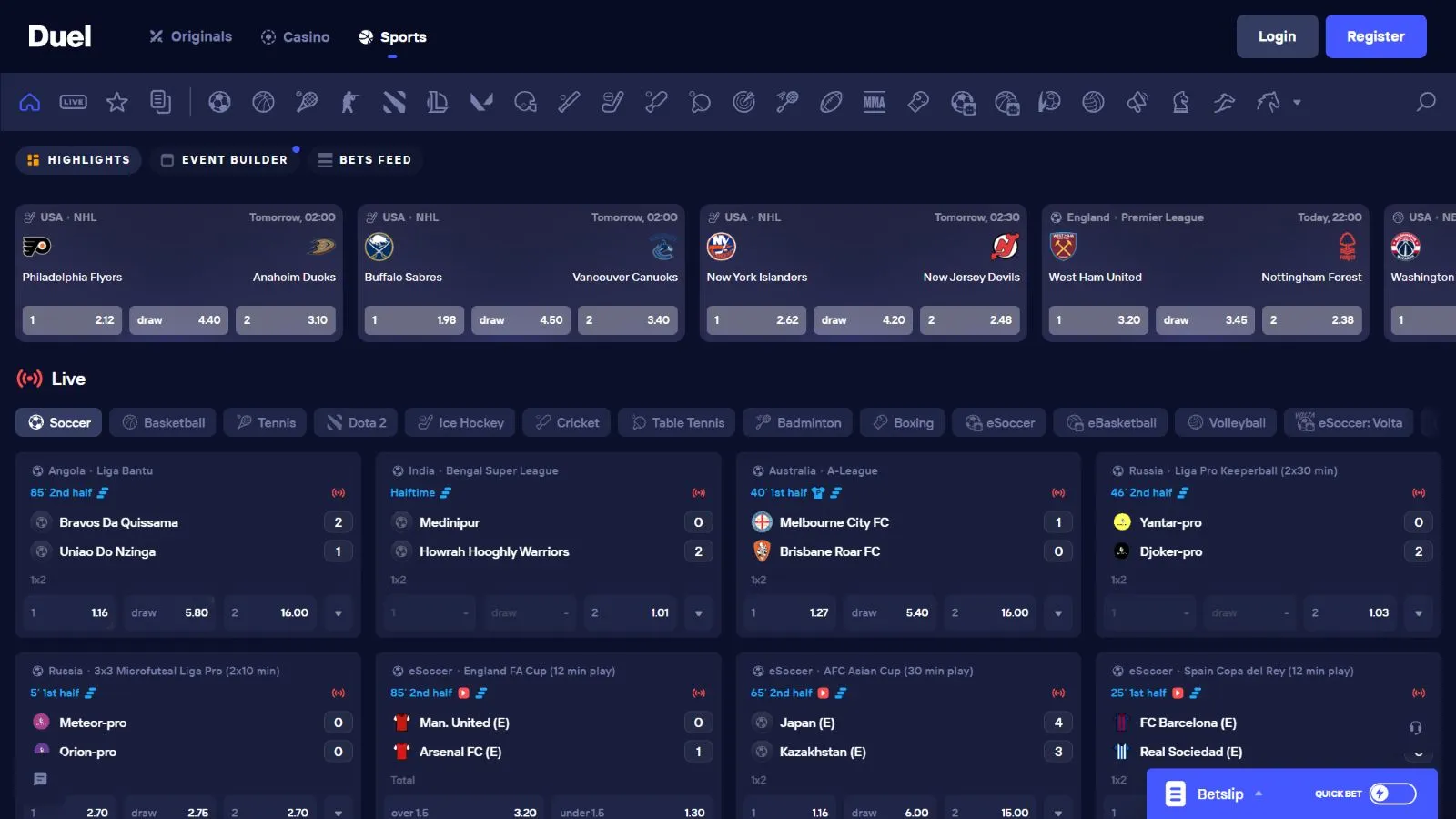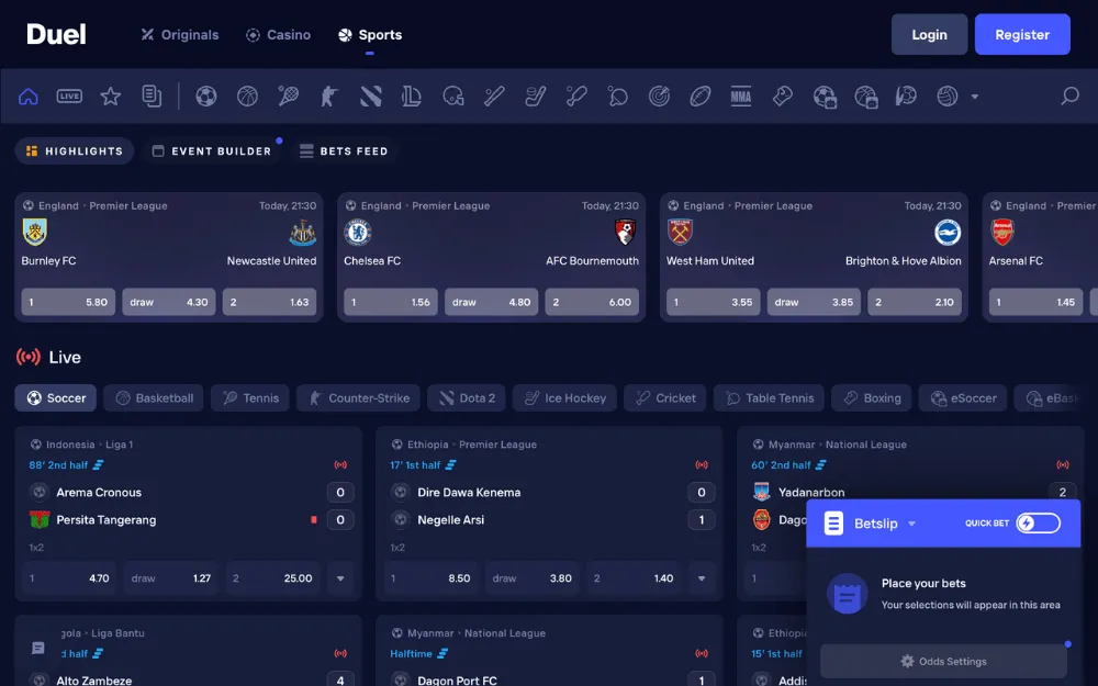 The Duel Sportsbook covers 50+ sports and esports, as well as racing markets, making sure passionate gamblers always find betting opportunities. It offers an intuitive interface, allowing you to surf through the lineup of markets and switch between sports easily.