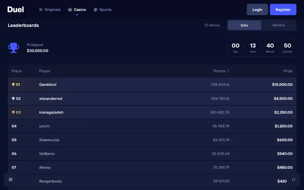 Instead of dangling flashy offers, Duel features a daily $30,000 tournament, rewarding the top 100 players. First place takes $15,000, while even the lowest spot gets $30. Whether you wager big or in small amounts, you still get a chance to walk away happier.