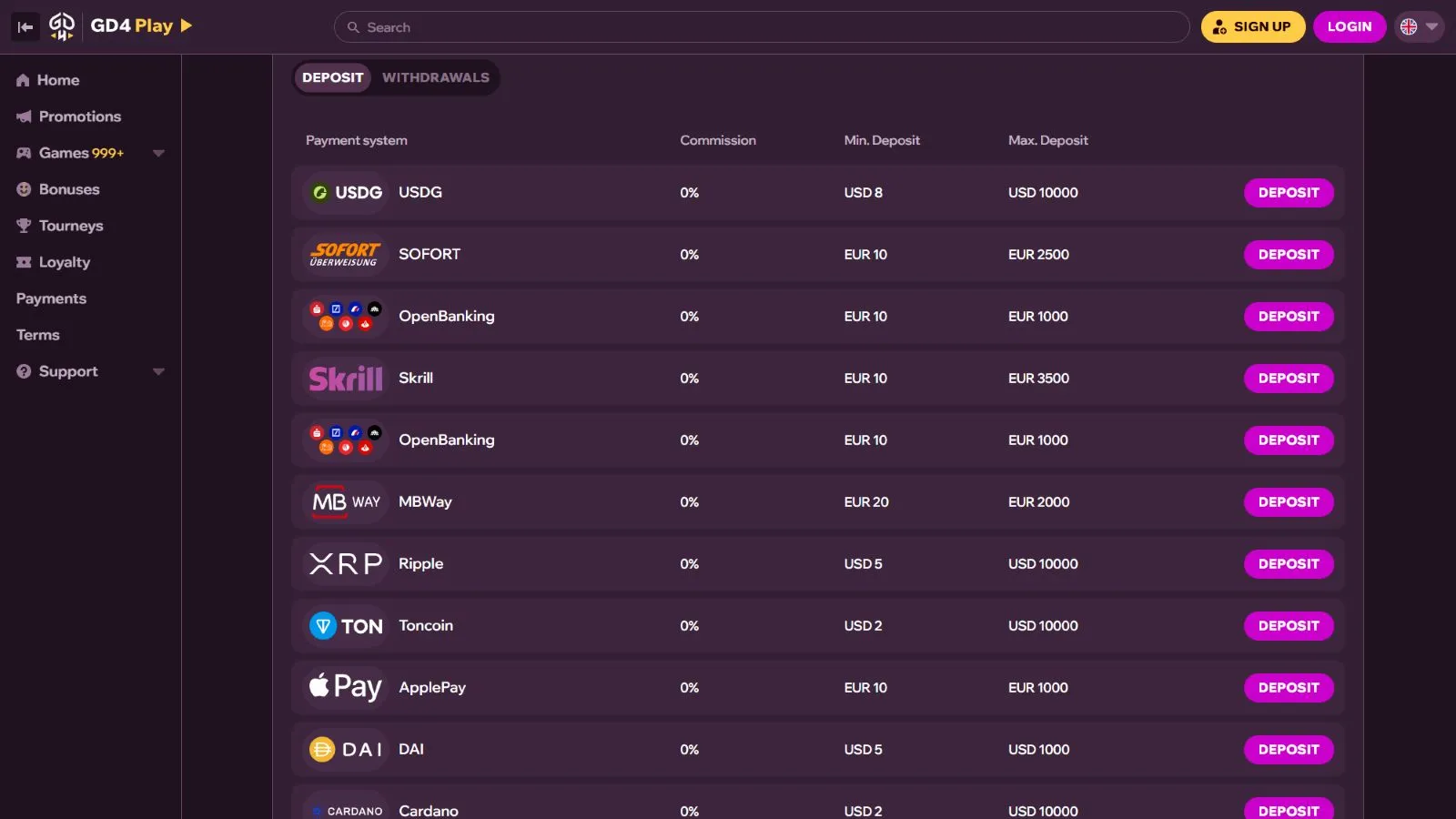 GDFPLAY Casino is a new casino that has only recently entered the market. So far, we've conducted a basic check and are continuing to gather data — from user experience to withdrawal conditions. A full review will be available after a more detailed analysis.