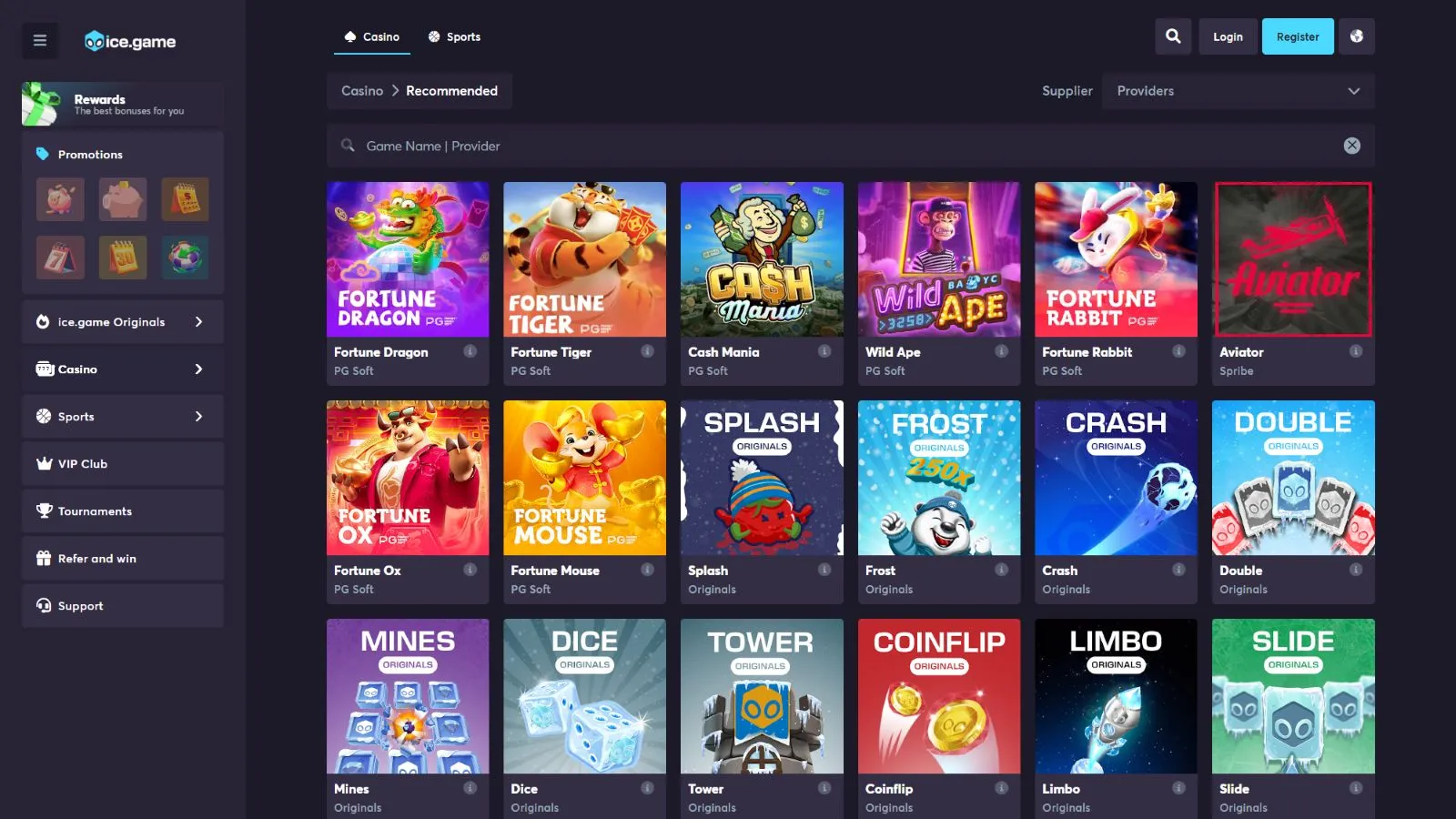 Ice Game’s slots category is the largest on the site, with about 10,000 games available. You’ll find many popular slots with bright visuals and animations, and many rewarding in-game bonuses.