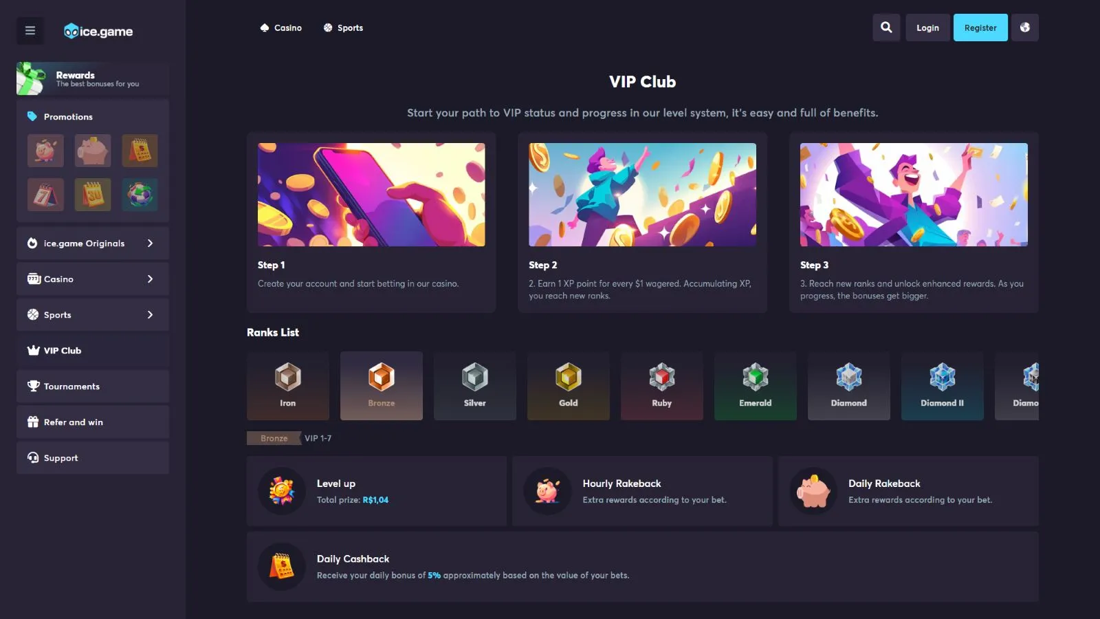 If you’re interested in bonuses, you’ll get plenty of them from Ice Game Casino through the VIP program. There are benefits like rakeback, cashback, and level-up rewards. The referral program also pays you lifetime commissions.