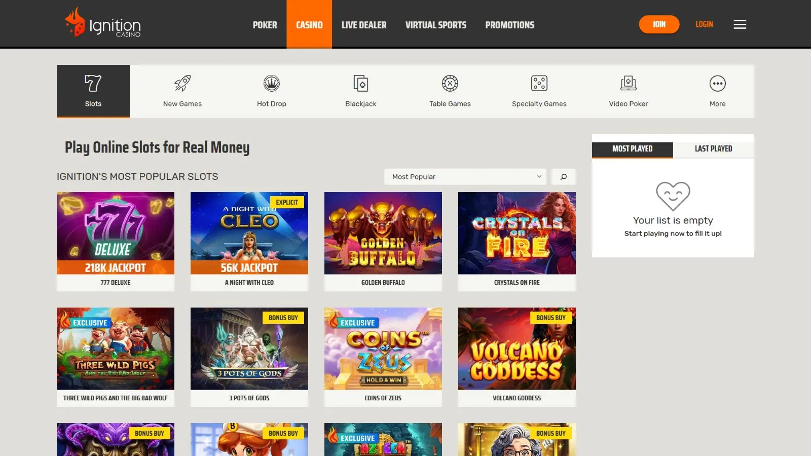 At Ignition, you can not only enjoy playing your favorite casino games but also win real money if you get lucky.