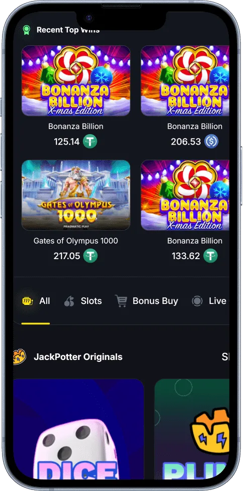There’s also a selection of 18 games in the Jackpotter Originals arena. This area is where the casino shows its personality instead of relying only on third-party studios. It covers card games, Crash, Plinko, and specialty games.