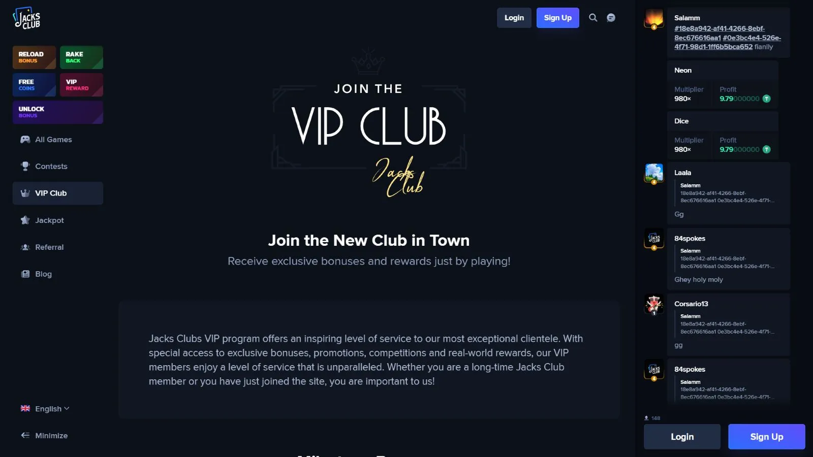 Online since 2020, Jacks Club is a premium online gambling site packed with over 9,800 games, amazing bonuses, and a general users chatroom. The iGaming platform is accessible in 10 languages, including English, German, French, Spanish, Japanese, and Russian.