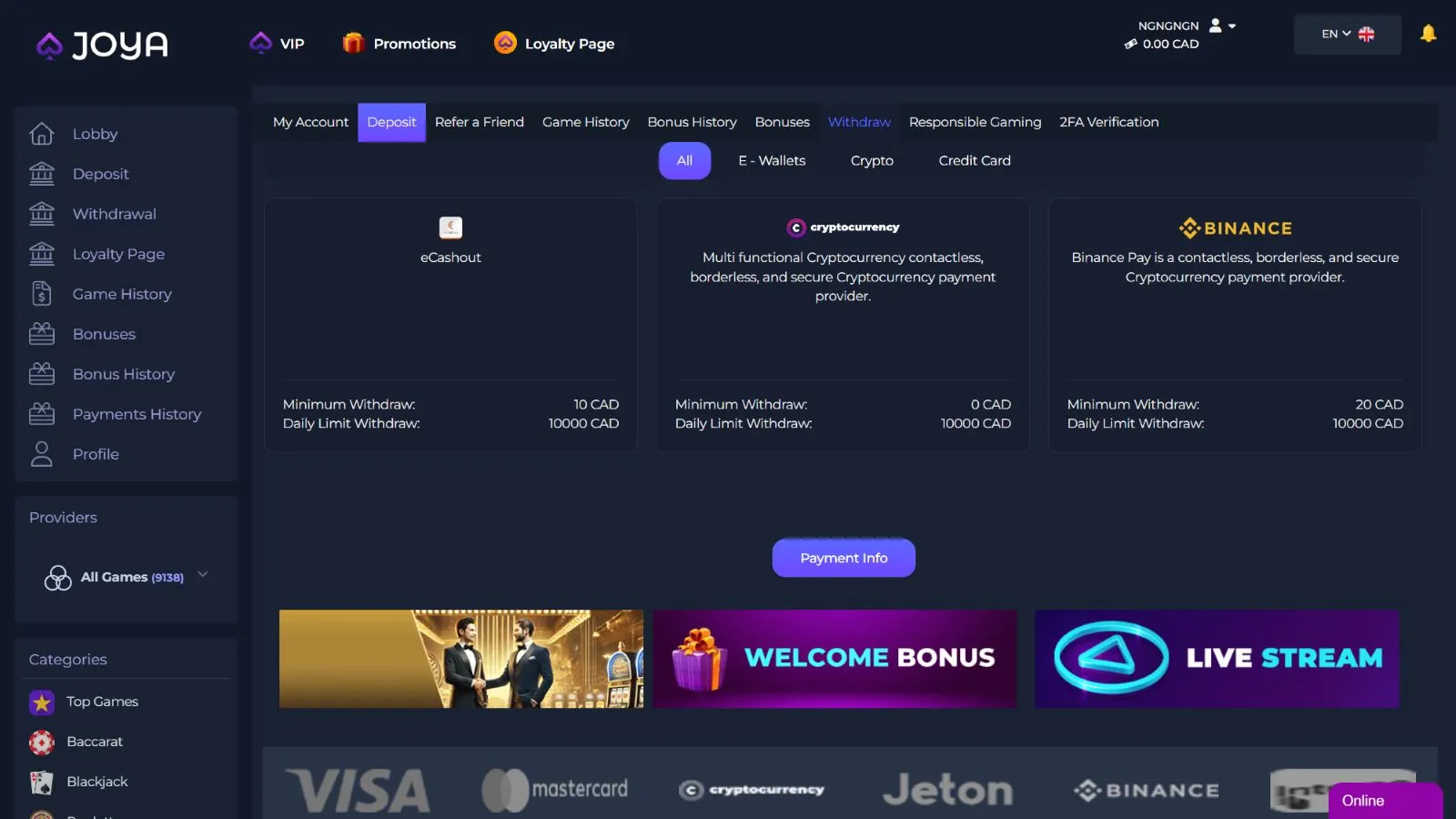 Payment Methods at Joya.Casino