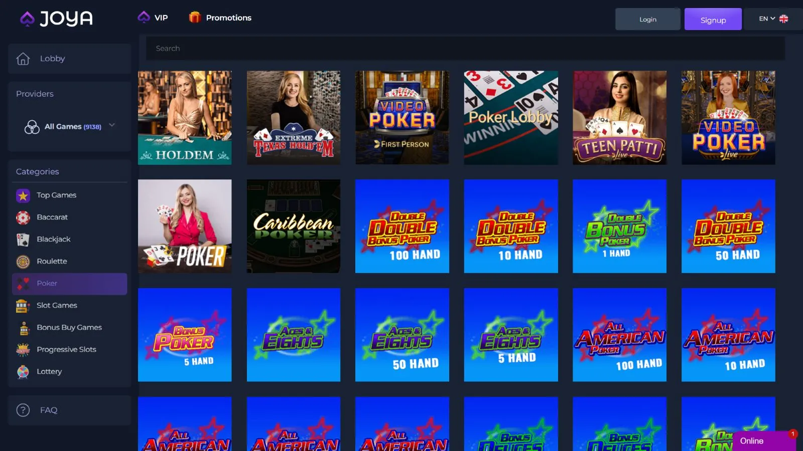 Another category where Joya Casino excels is video poker. It offers over 50 video poker titles of different kinds and from various providers. The easiest way to find them is by visiting the poker section of the site.