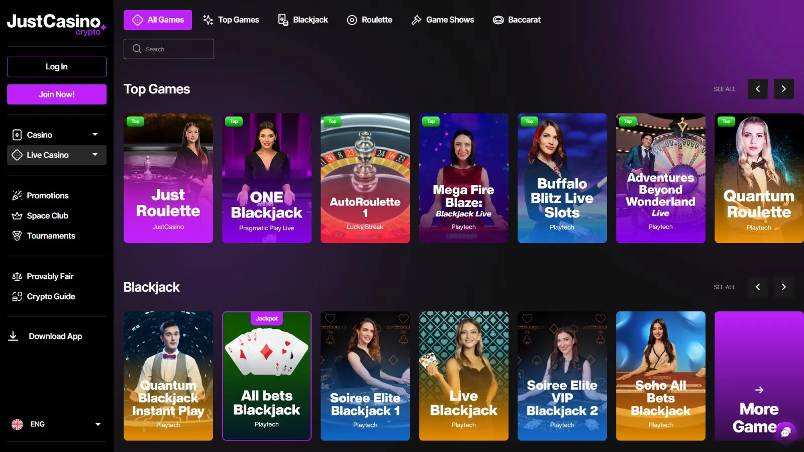 JustCasino.io, a crypto casino, provides players with a premium gaming experience through a wide selection of captivating games. Whether you’re on a mobile device or desktop, the interface is designed for easy navigation.