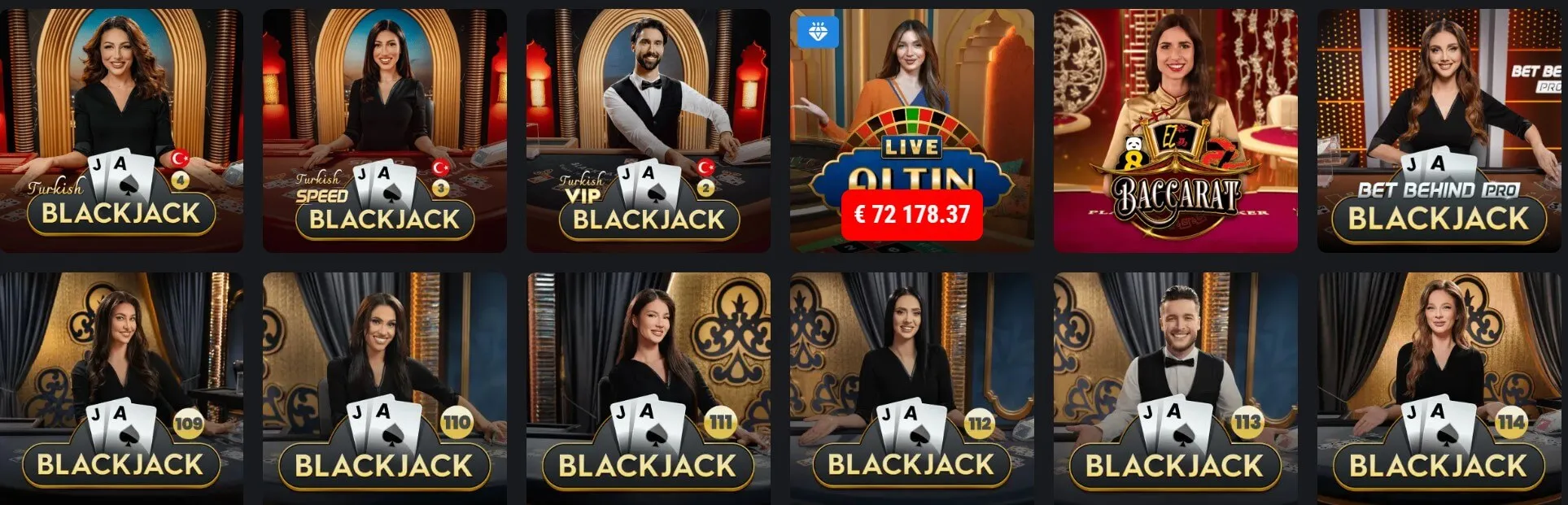 Live Speed Roulette, Mega Roulette, Auto Roulette 1, Double Ball Roulette, French Roulette Gold, Lightning Roulette, Classic Blackjack Live, Blackjack VIP, Blackjack Party, Bac Bo, American Roulette, Baccarat Squeeze, and Caribbean Stud Poker are just some of the Live Casino games that you can play here. Speaking of the best Live Casino providers, they are Evolution Gaming, Ezugi, and Pragmatic Play Live.