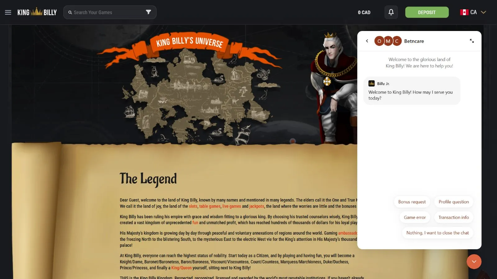 King Billy casino has a superior customer support team. There are 2 ways how to get assistance when in need: