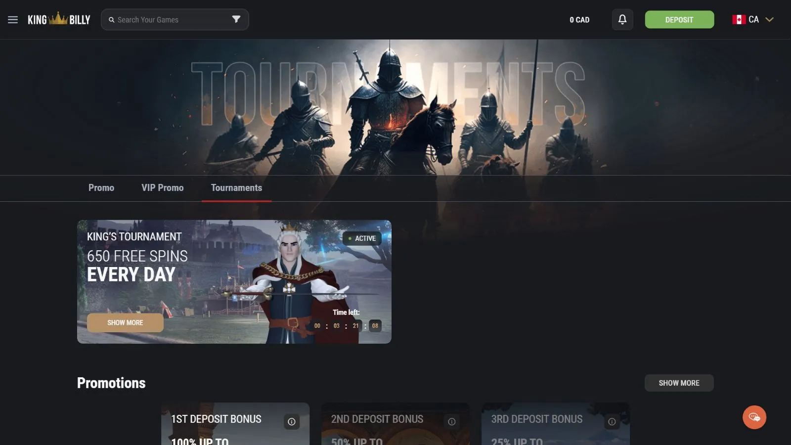 Finally, we have reached the last section of the King Billy casino review. One of the things that we loved most about this casino was the huge welcome deposit bonus. In addition, there are valuable promotions that you can claim every day. For those of you who love playing casino tournaments, you can win your share of 650 Free Spins every day and even get 15% cashback if you get to the highest level of its VIP system.
