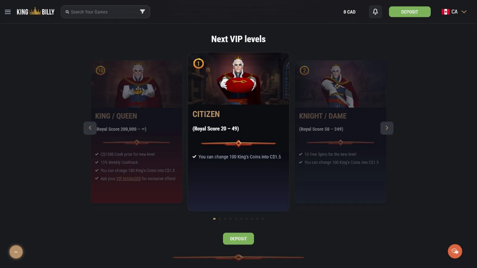 King Billy casino is very generous when it comes to rewarding his most loyal and brave players. That is why it is running the Casino VIP Club, where you can reach a level of a King/Queen just for playing your top casino games with real money bets.