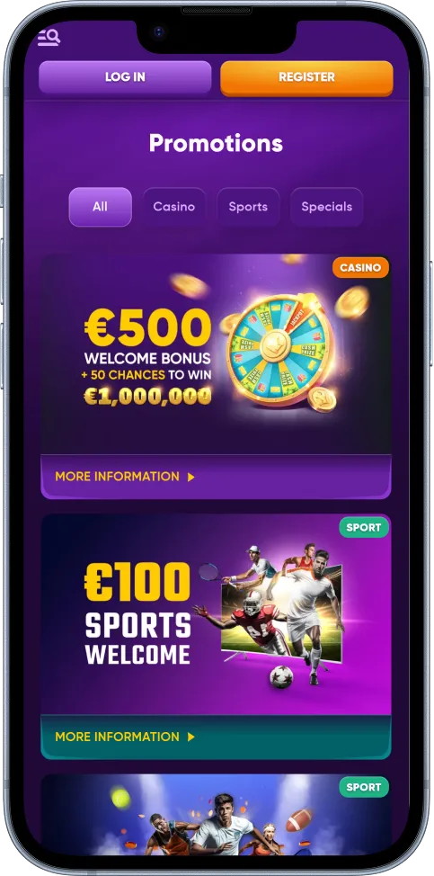If you prefer to wager on sports, you also get a chance to claim 100% up to €100 on your first deposit. This bonus can be used on all sports and events that meet the odds requirement.