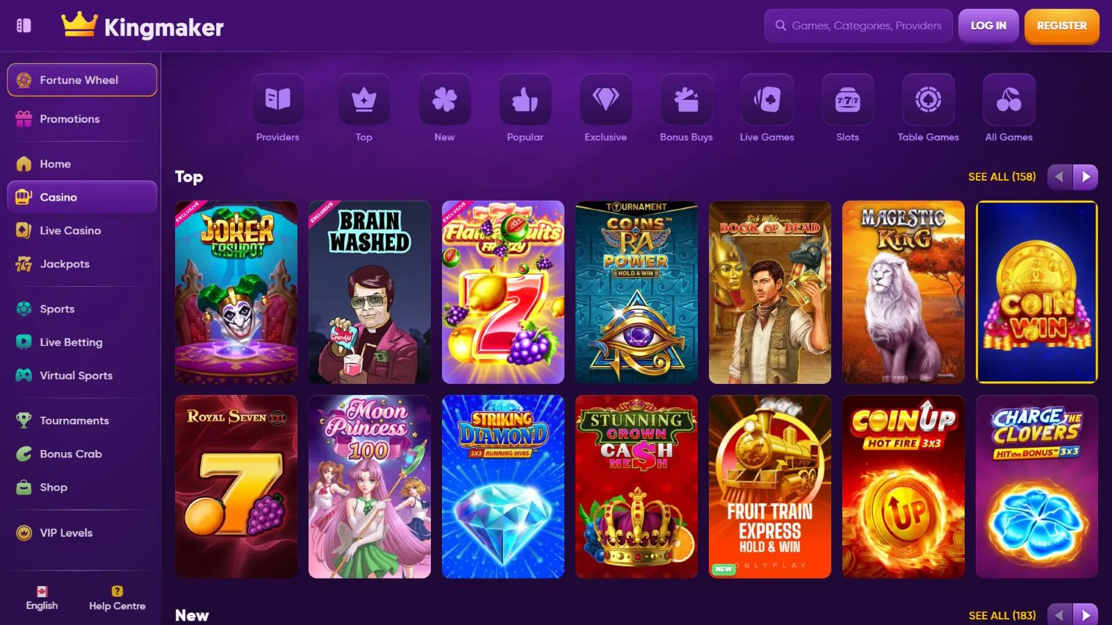 Kingmaker Casino Games and Providers