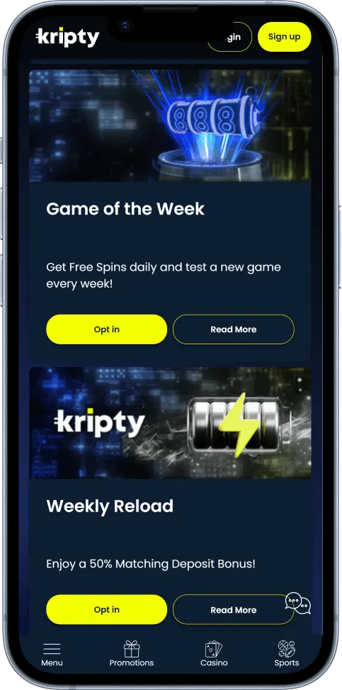 If you hope to play at Kripty Casino with your mobile device, you have nothing to worry about. The iGaming platform runs on a mobile-compatible website with an intuitive user interface, making it easy to play games and bet on sports with your smartphone.
