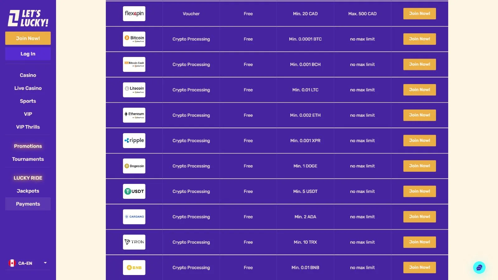 Taking your money in and out of online casinos should be easy! And this is definitely the case here, thanks to Let’s Lucky’s range of highly accessible and diverse payment methods. We’ve summarised the deposit and withdrawal limits in the table below: