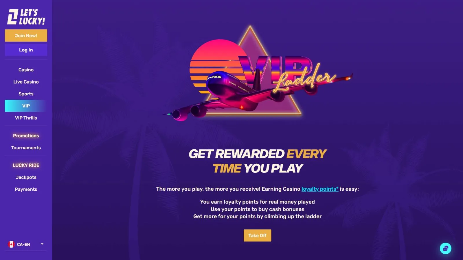 Let’s Lucky has a highly generous VIP program that lets you keep on claiming a welcome bonus. Every time you level up, you receive a reward! To level up, earn loyalty points just by playing games. The points can also get you Level Welcome bonuses.