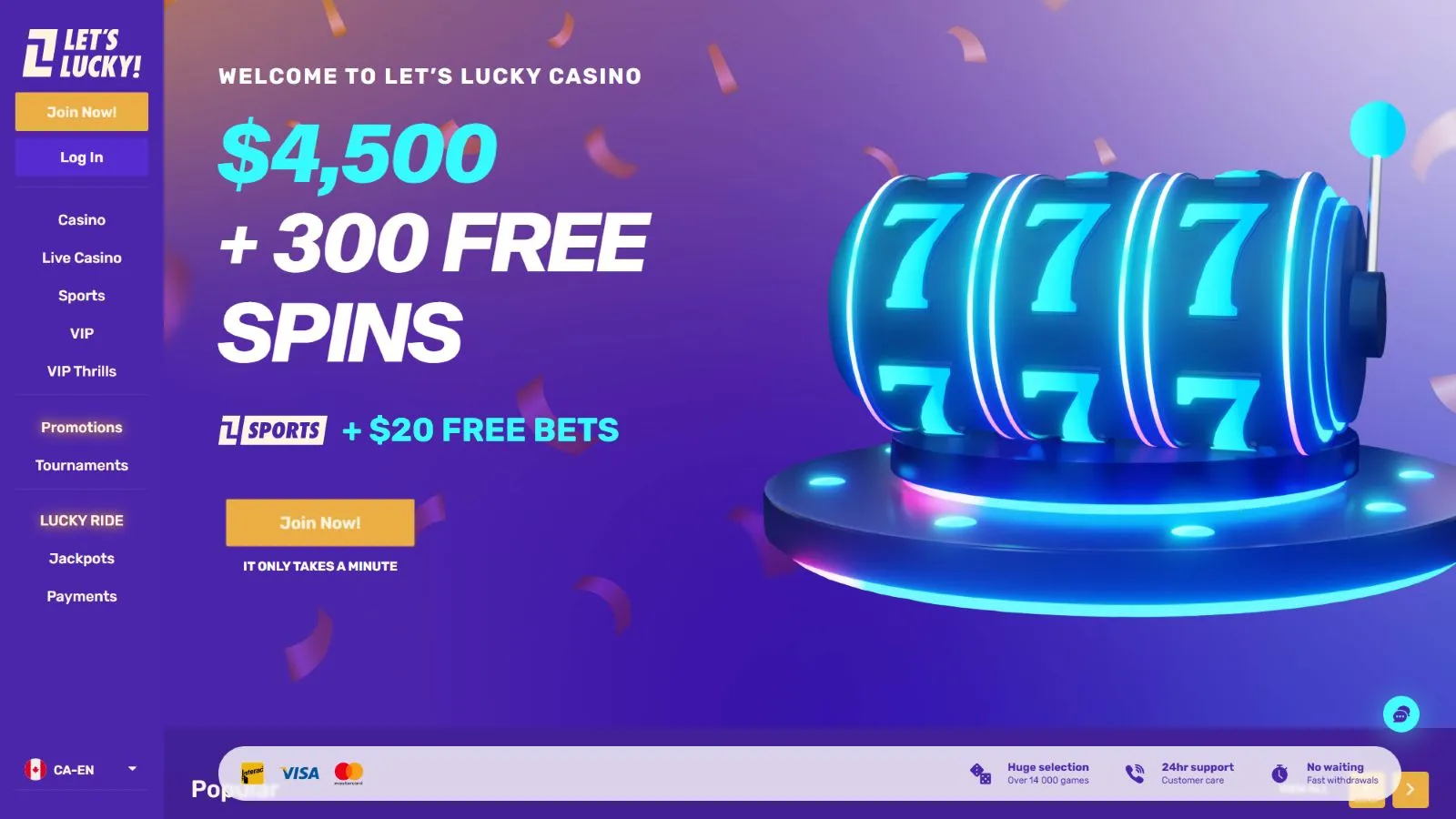 If you love games, how do more than 14,000 of them sound to you? You sure have found a four-leaf clover in Let’s Lucky Casino! Right from the homepage, you can see all the titles available, as well as the ones currently featured.
