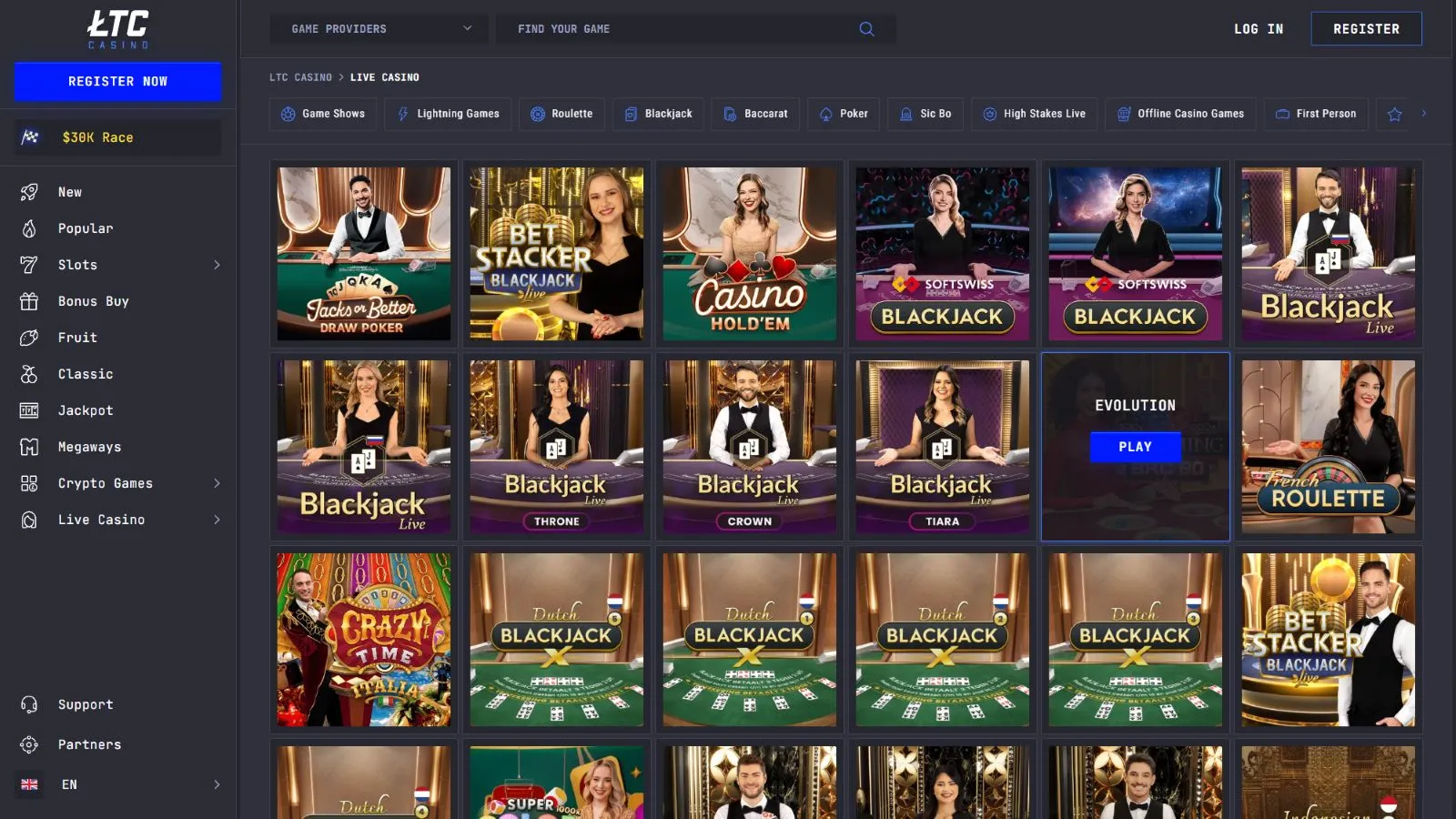 Additionally, you can click on the “Game Shows” subcategory in order to see every game show available at LTC casino. Gonzo’s Treasure Hunt, Lightning Dice, Dream Catcher, Mega Ball are some of the live shows that you can play.
