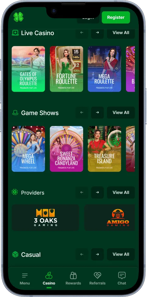 The platform’s Irish theme is impossible to miss with all the green and clover visuals. Still, it extends its services to more than just Irish people. Its offshore licensing keeps it open to players from over 100 countries and regions.