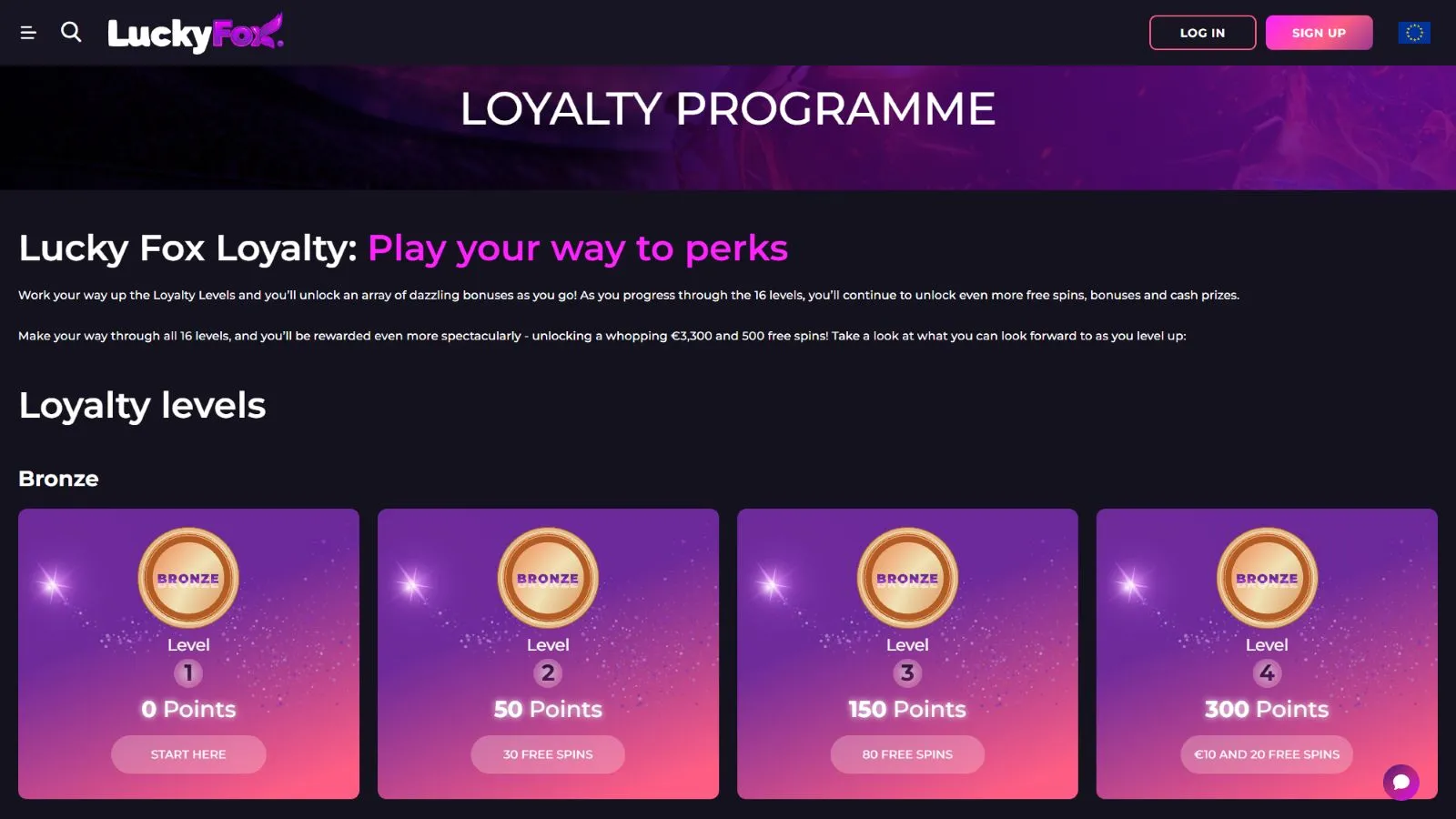 Below, we will tell you more about the 16 Loyalty levels at LuckyFox casino: