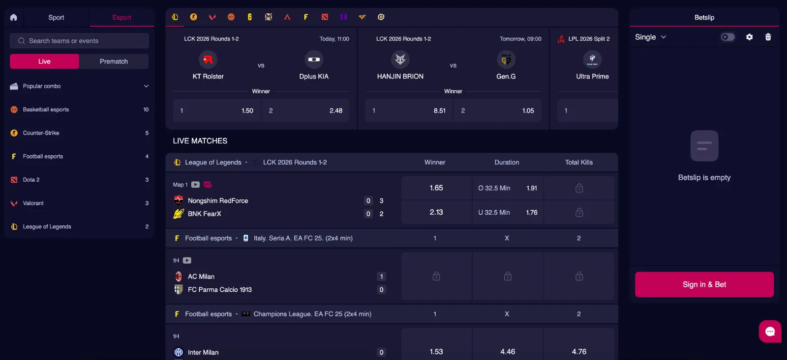 - Accumulator bet on sports or esports events with minimum odds of 1.5 for each event