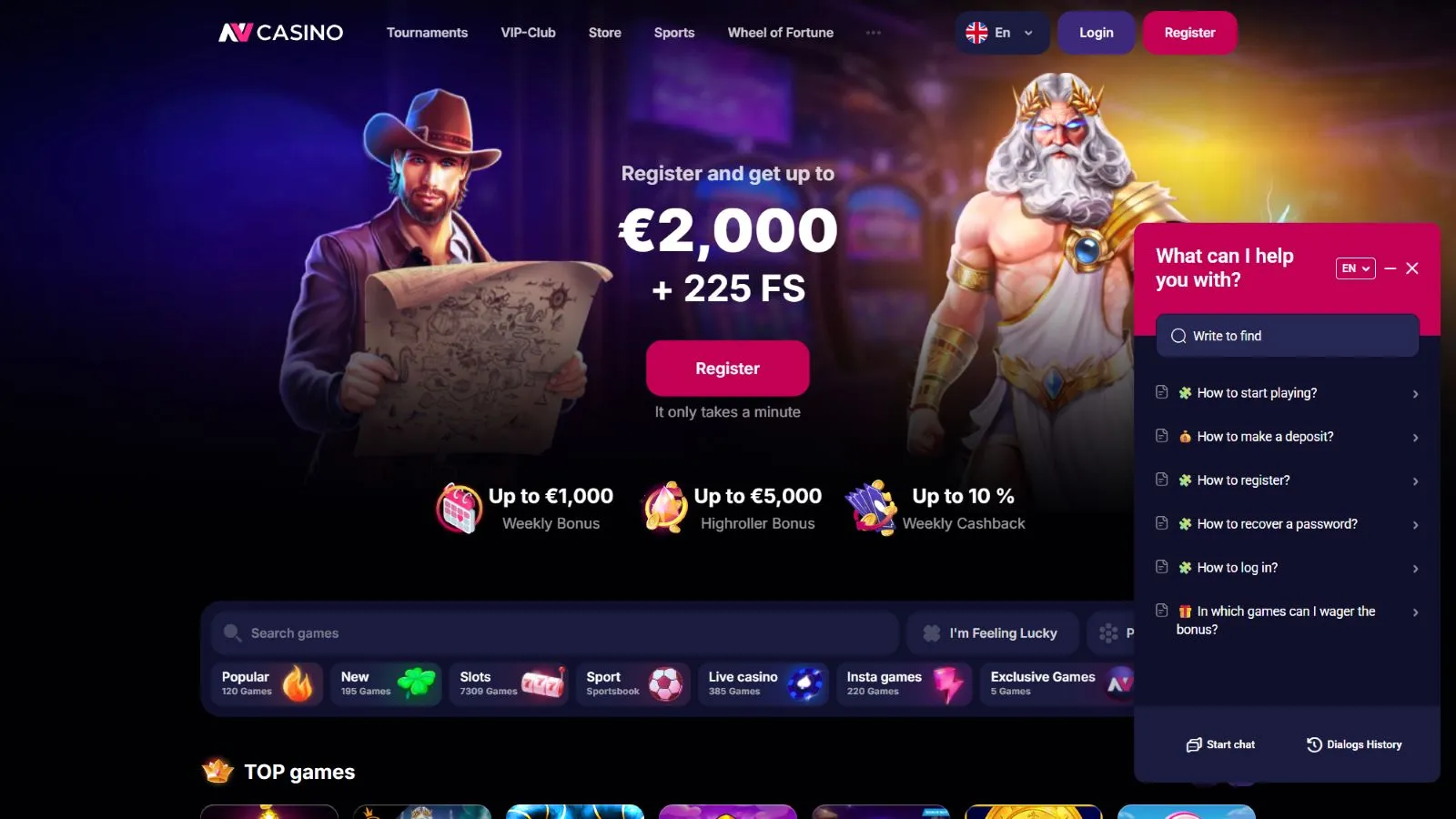 If you ever face a difficulty at NV Casino, help is not far away. You can access support at any time of the day via live chat.