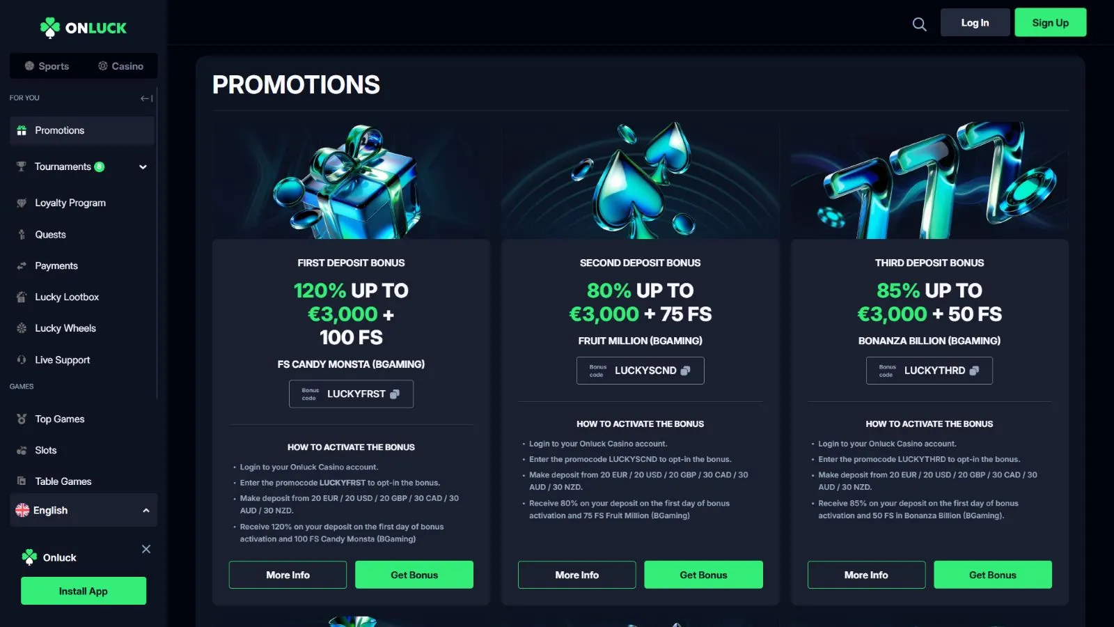 OnLuck crypto casino is home to many valuable promotions and bonuses. By using special promo codes, players can unlock exclusive bonuses and maximize their gaming experience. Don’t miss out on these fantastic offers that can help you in getting profits while playing your favorite casino games.