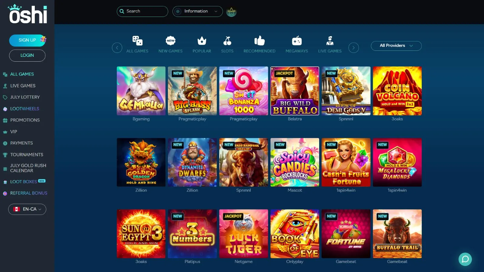 Unlike most other online casinos, Oshi’s games are divided up into a bunch of different categories, which makes them easier to find. Game categories at Oshi include: