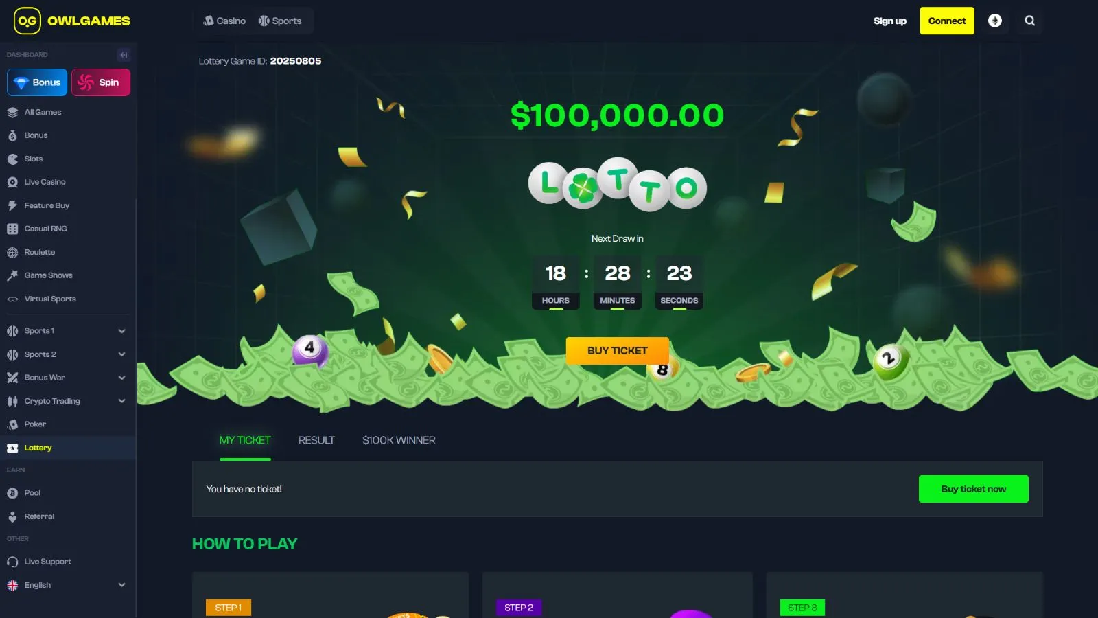 As we said, at Owl.games casino there is no welcome bonus package that you can use as a newcomer to their site.