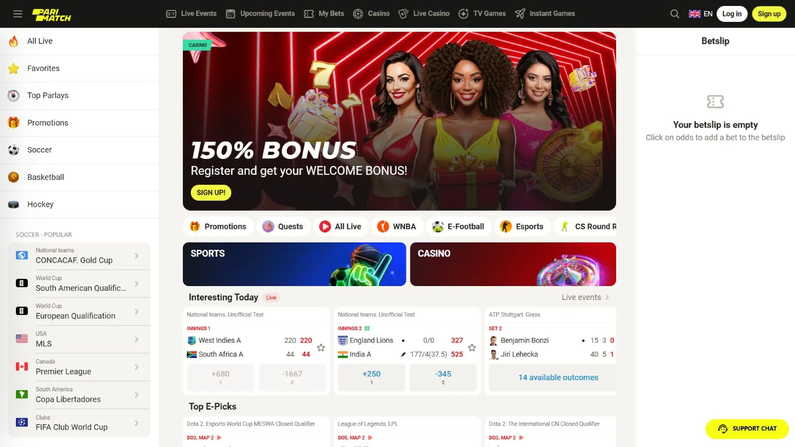 After your first deposit, Parimatch allows you to choose one of the following bonuses: