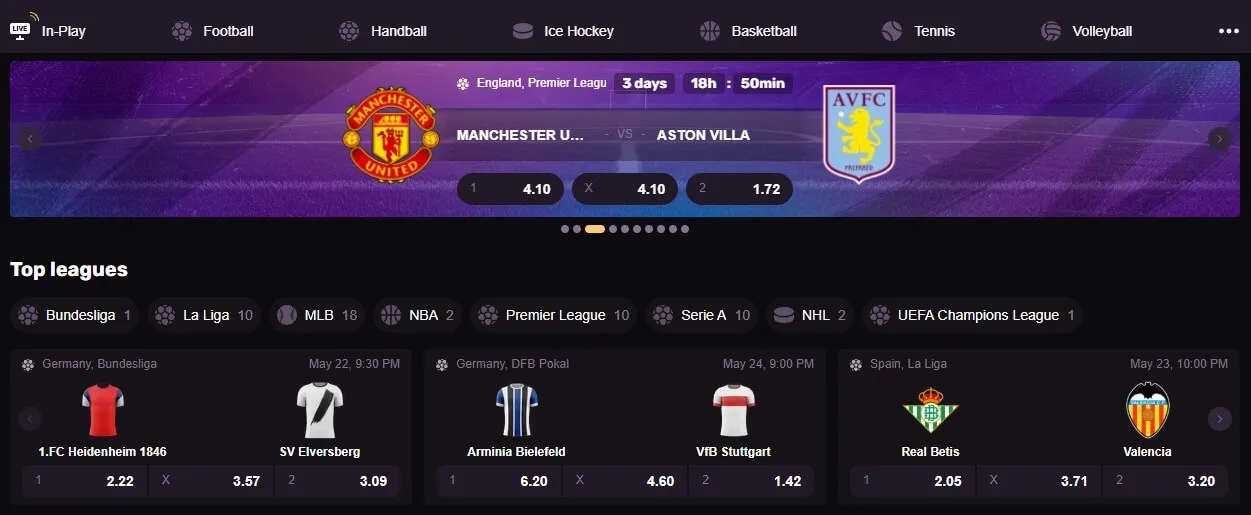 Playbet Sportsbook is one of the most impressive platforms for sports enthusiasts, ranking among the best sportsbook crypto sites thanks to its wide variety of sports and esports options. The platform offers over 80 sports and esports, covering the top global sports as well as niche sports in various regions. It also has a clean layout, which makes it pleasant to navigate through the betting markets.