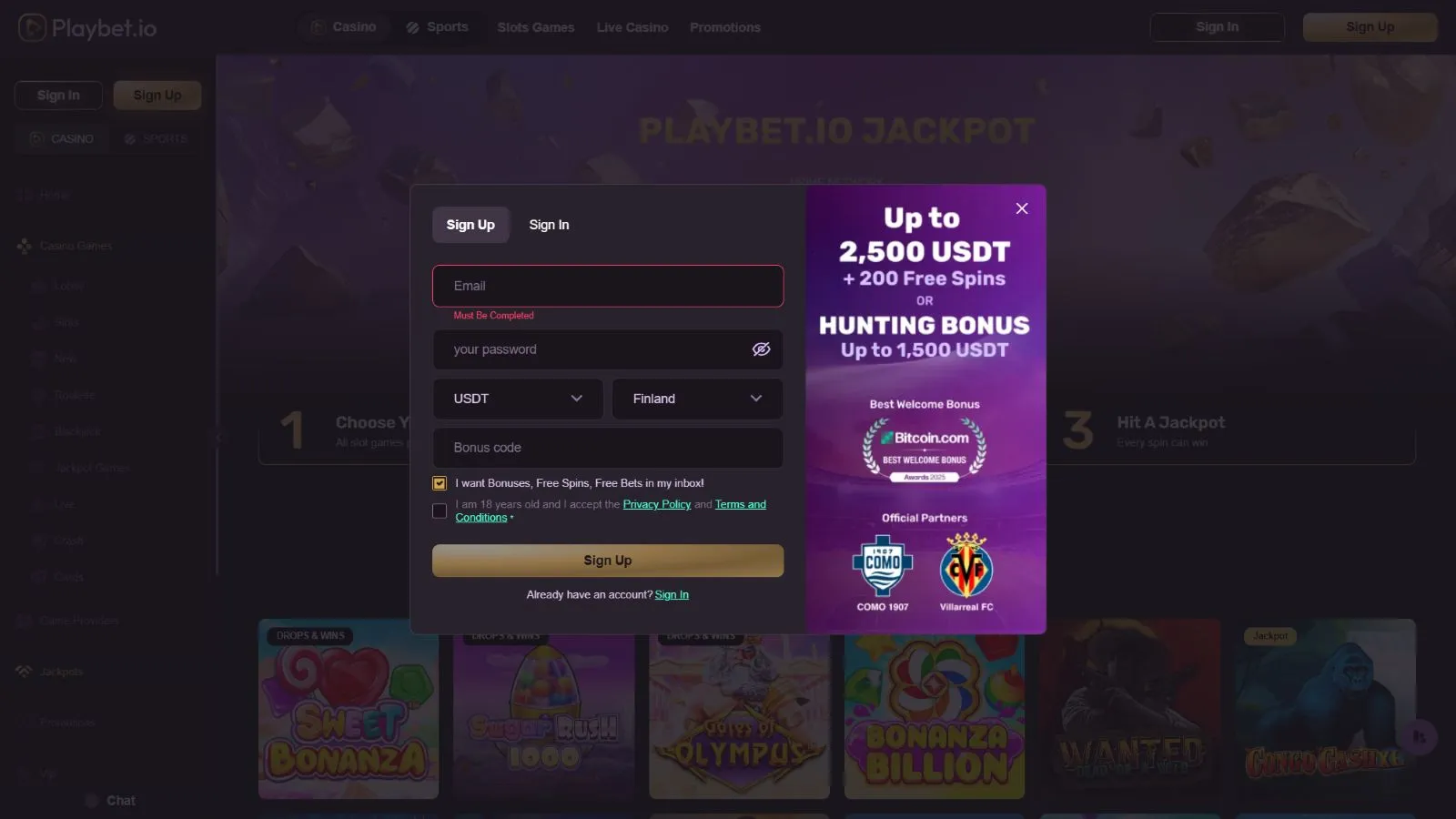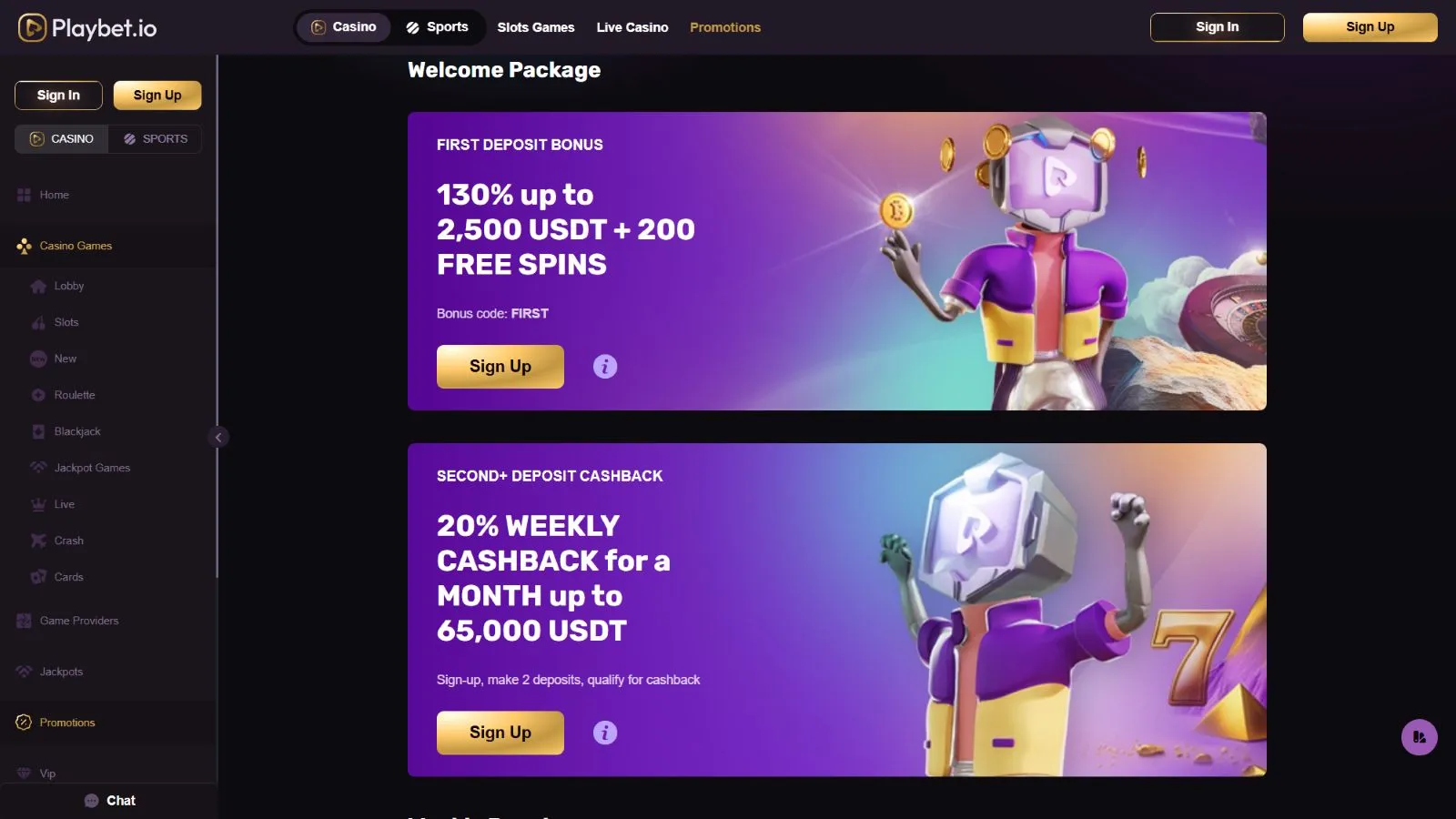 Punters on the platform are also welcomed with a superb 450 USDT free bets + 1,500 USDT Hunting bonus package. Like the casino offer, this bonus is distributed over your first four deposits at the site. There are also special Playbet promo codes to apply during your deposits.