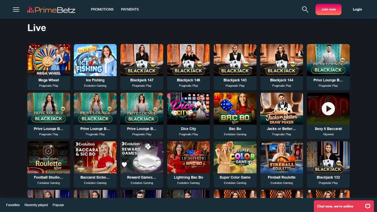 PrimeBetz Casino Games