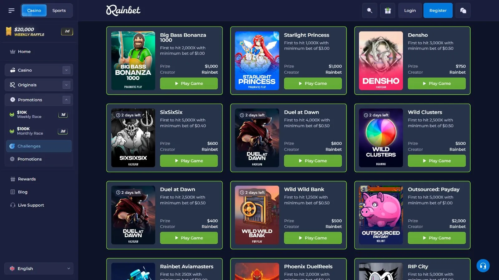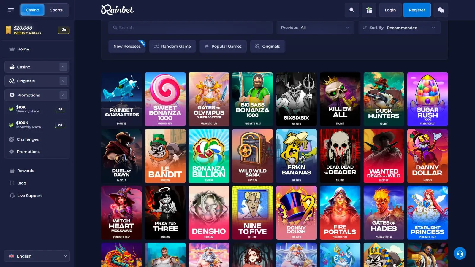 The lobby offers more than 4,000 slots, each game offering exciting themes and superb visuals. Rainbet carefully selects the most popular slots with rewarding in-game bonuses and huge jackpots.