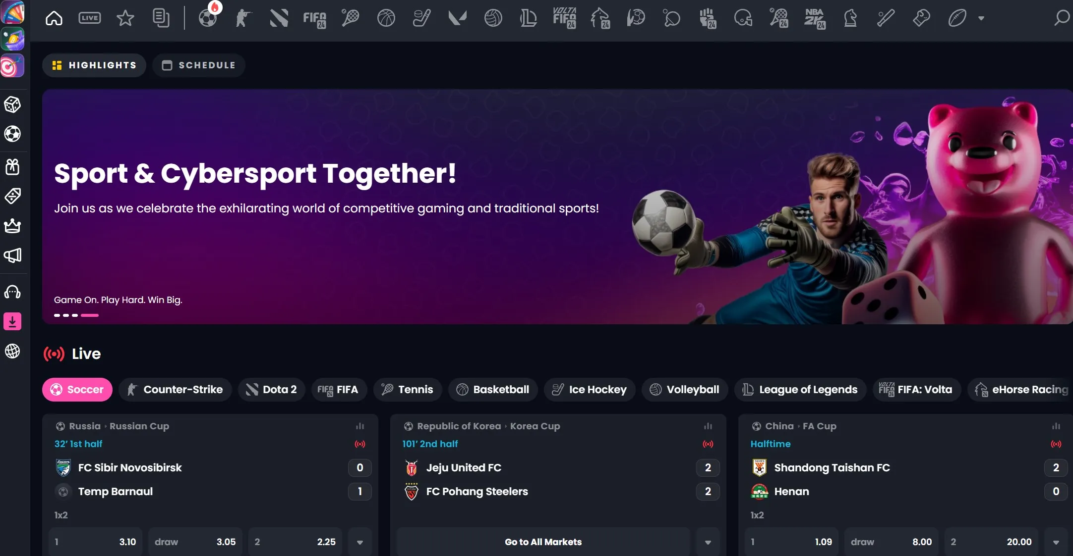 What’s more, the sportsbook has a “Live” segment, where you can bet on ongoing events across sports like soccer, basketball, volleyball, and many others. Results from the games are displayed in real-time, so you can make your betting decisions easily.