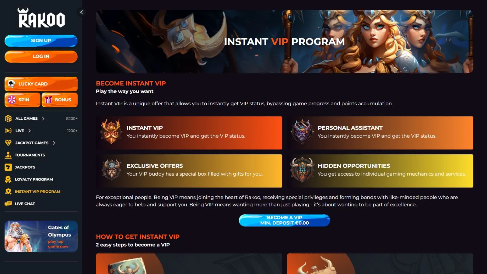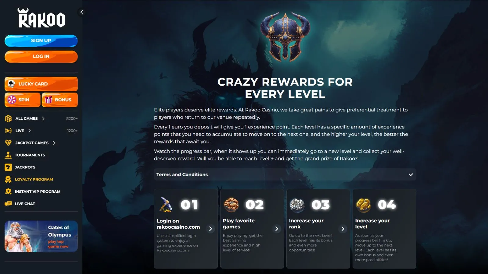 At the bottom section of the site, players can find insights about Rakoo’s licensing. The various payment methods supported by the platform are highlighted, ensuring clarity on transactional options. Lastly, for those seeking further clarity or having specific inquiries, there’s easy access to the comprehensive FAQ section and the detailed Terms & Conditions page.
