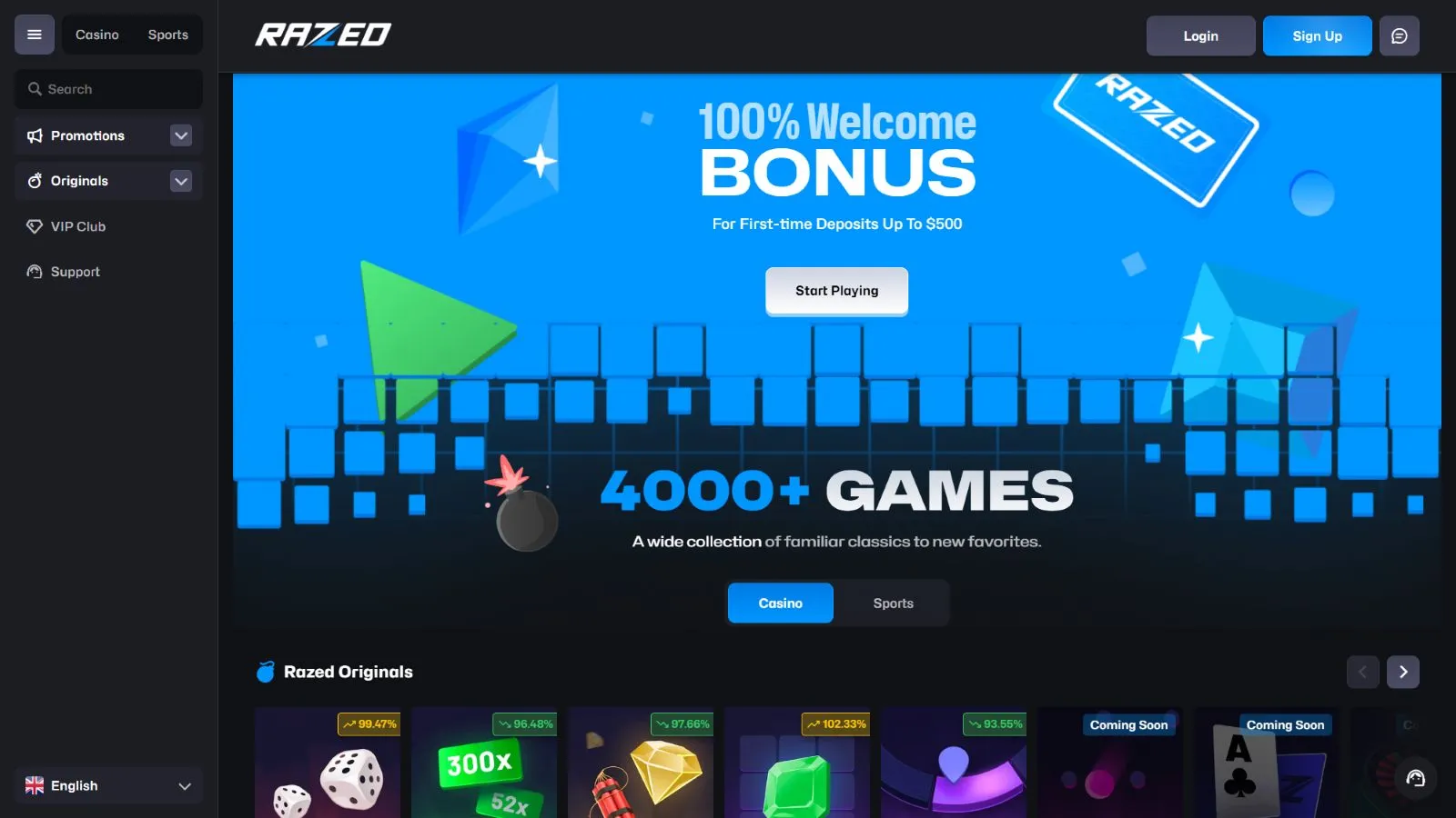 Launched in 2024, Razed is an online gambling site offering casino gaming, sports betting, esports, and instant crypto payouts. The Bitcoin casino is accessible in 13+ languages, ensuring that gamers from different nationalities can gamble easily.
