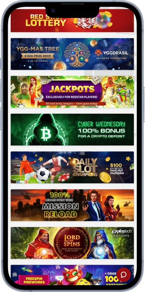 This section highlights some of the most attractive promotions available at the time of writing. While these offers are time-limited, RedStar regularly refreshes its casino promotions, replacing expired deals with new ones.