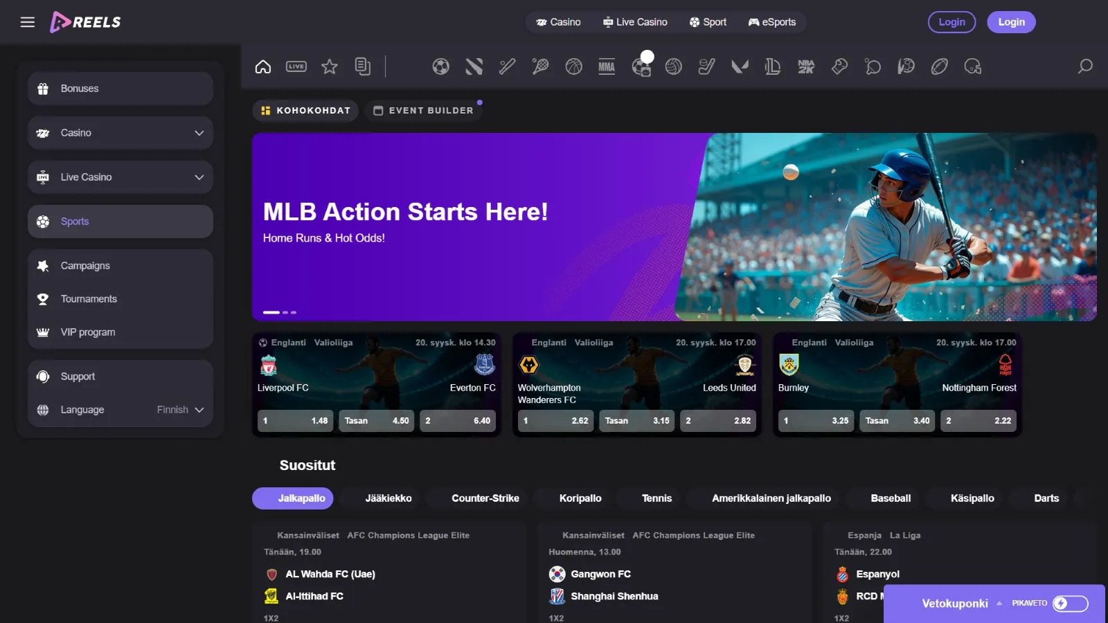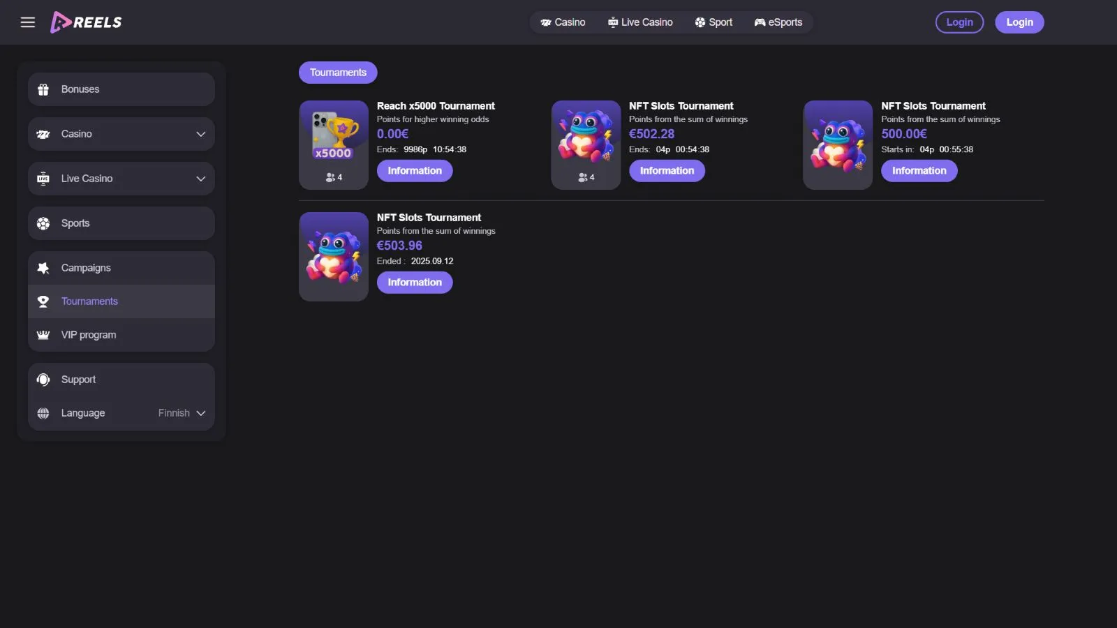 Launched in September 2025, Reels is an excellent crypto casino & sportsbook with daily reload bonuses and NFT tournaments. The online gambling site accepts players from numerous countries and supports 20+ languages.