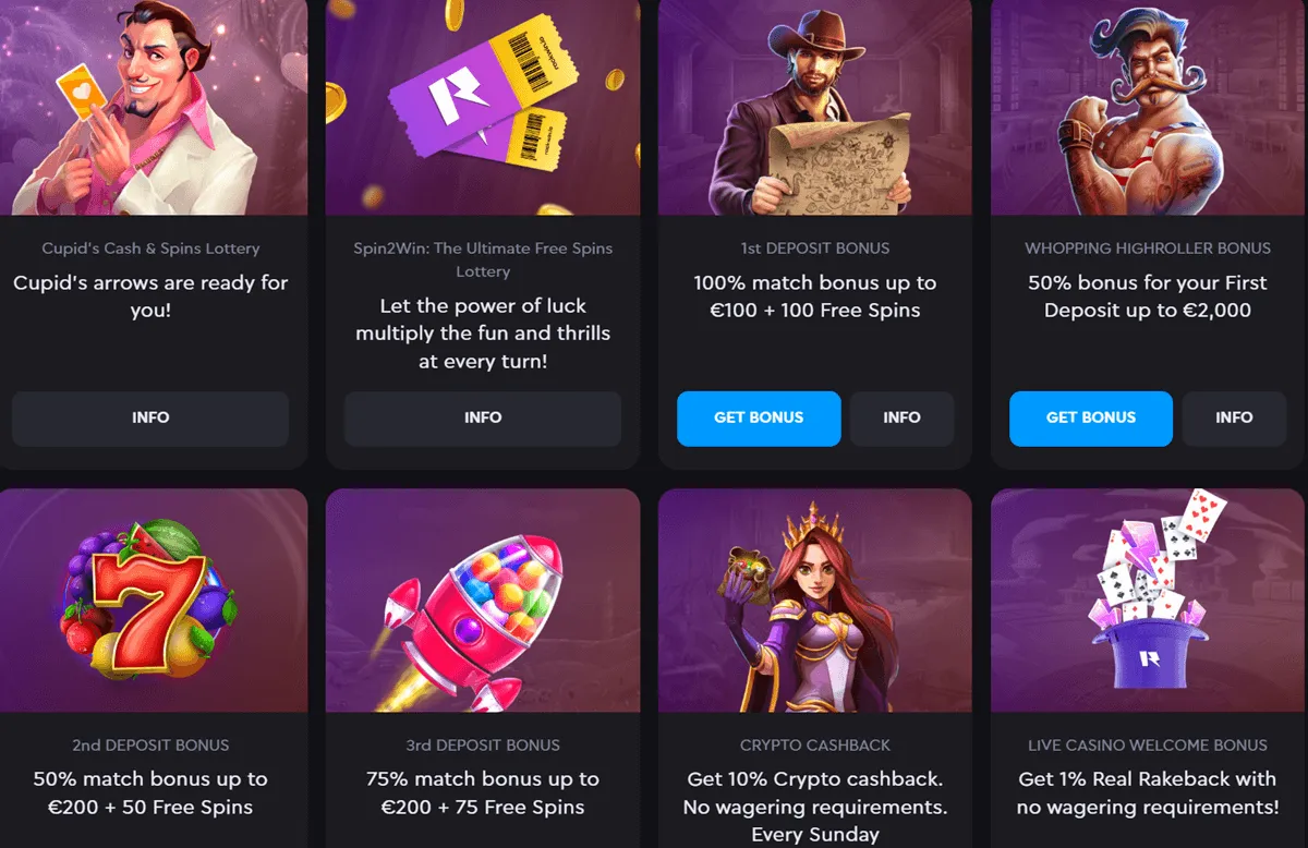 - RCK5: Tuesday Fun – A 50% match bonus up to €100 to rock your Tuesdays.