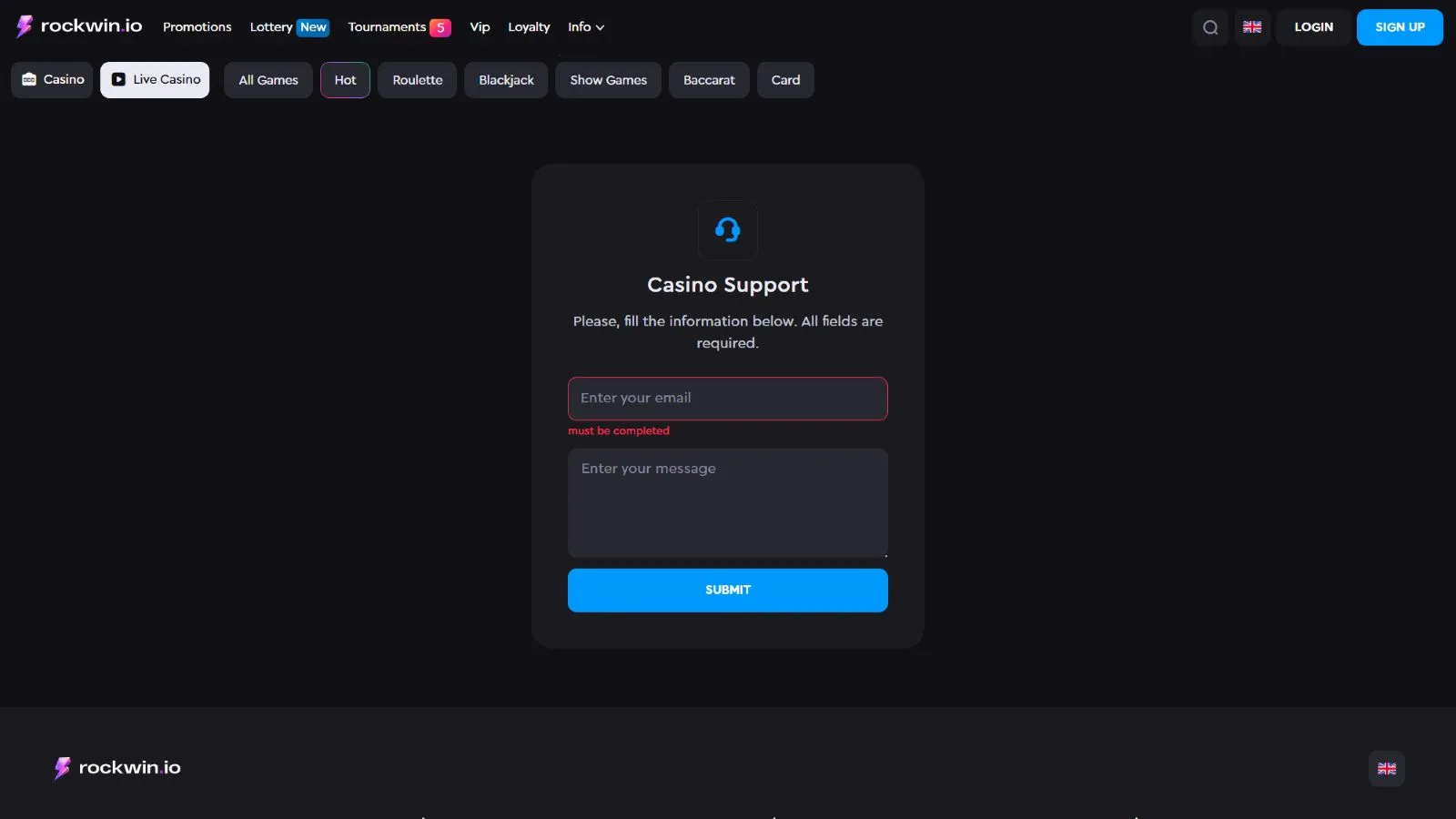 Rockwin casino offers an array of support options handled by a highly competent customer support team:
