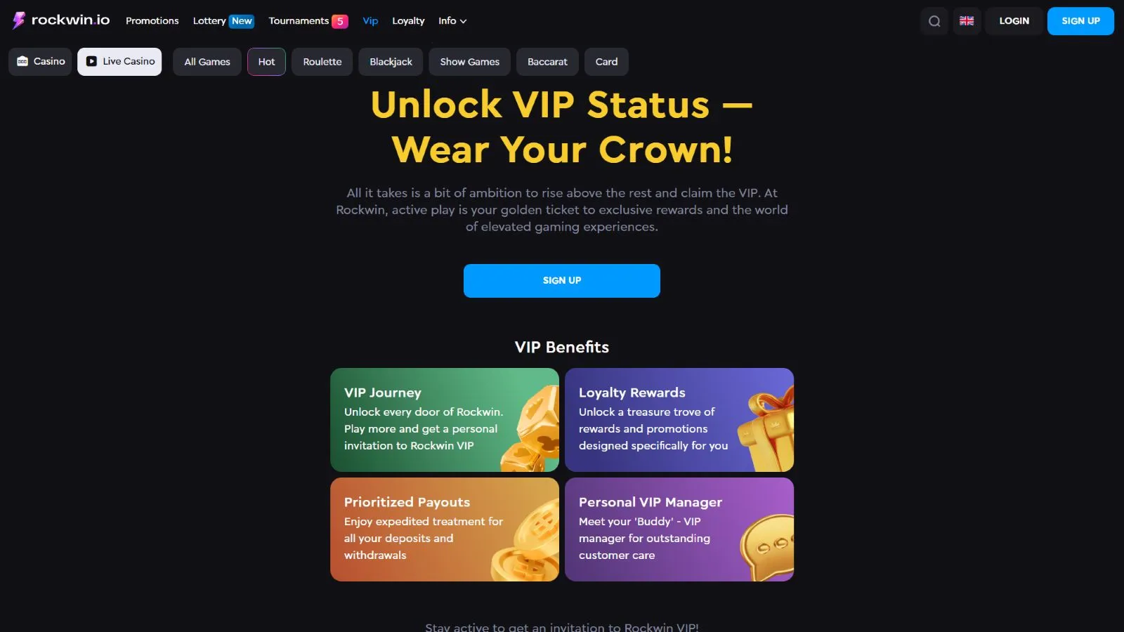 Showcasing an impressive collection of casino games, Rockwin.io provides a hub of entertainment across various categories. Whether you’re into live casino games, slots, table games, or have an eye for jackpots, there’s something for everyone. The gaming content is powered by renowned providers such as Habanero, Hacksaw Gaming, and Spinomenal, ensuring a top-quality gaming experience. The straightforward interface of Rockwin.io promises easy navigation, even for novices in the online gambling scene.