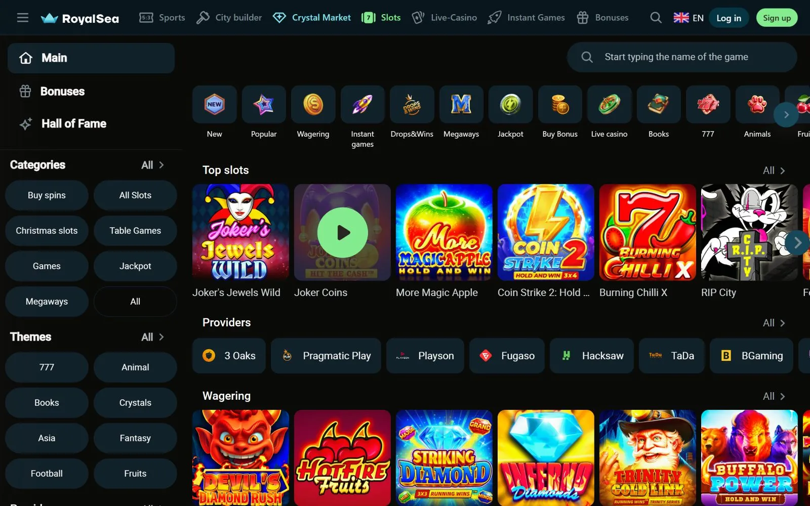 Spend a few minutes in the RoyalSea Casino lobby, and the scale becomes hard to ignore. The library contains 11,000+ games, and slots clearly take over most of the space. The rest of the catalogue opens up into table games, bingo, instant wins, and crash titles.
