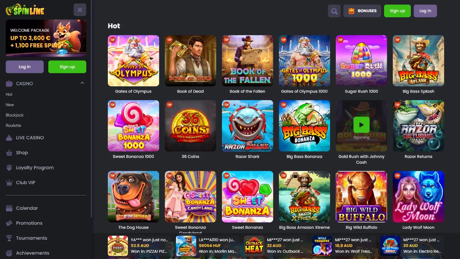 Slots make up the biggest share of the collection, with more than 9,000 slots available. It doesn’t matter if you’re into old school classics, simple video slots, megaways, or cluster pays, Spinline has them all. The casino carefully selects all the popular slot titles with innovative bonus features.